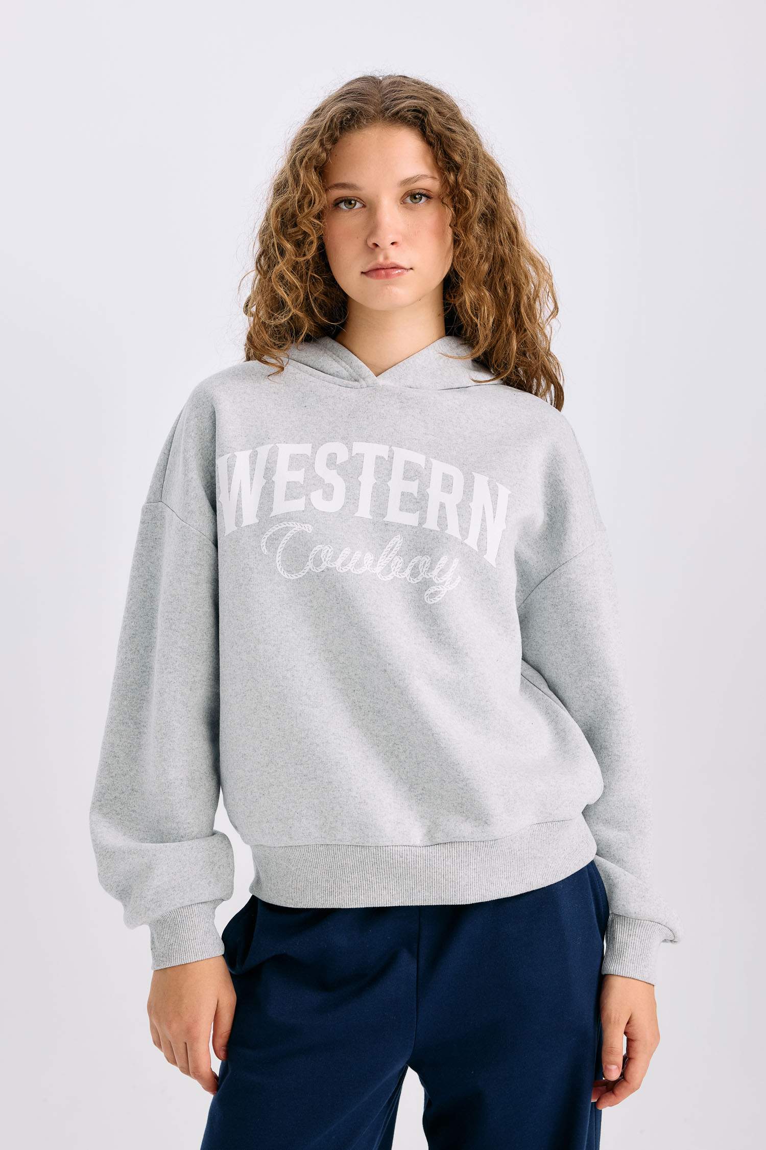 Oversize Wide-Mould Hooded Printed Thick Sweatshirt