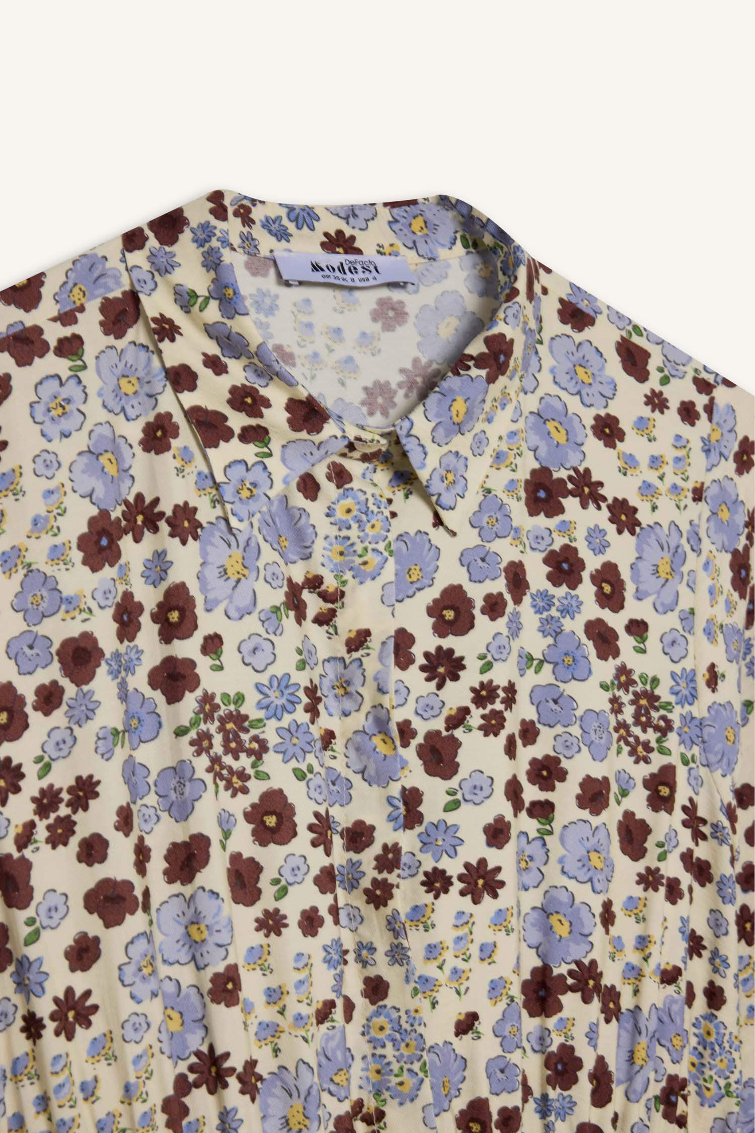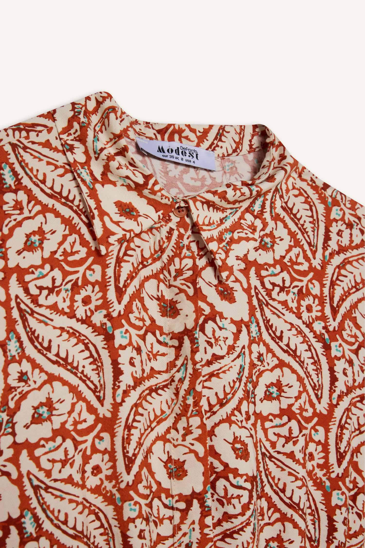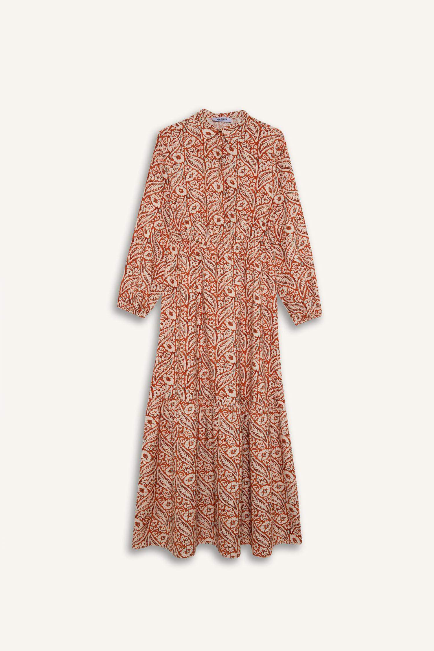 Shirt Collar Patterned Long Sleeve Maxi Dress