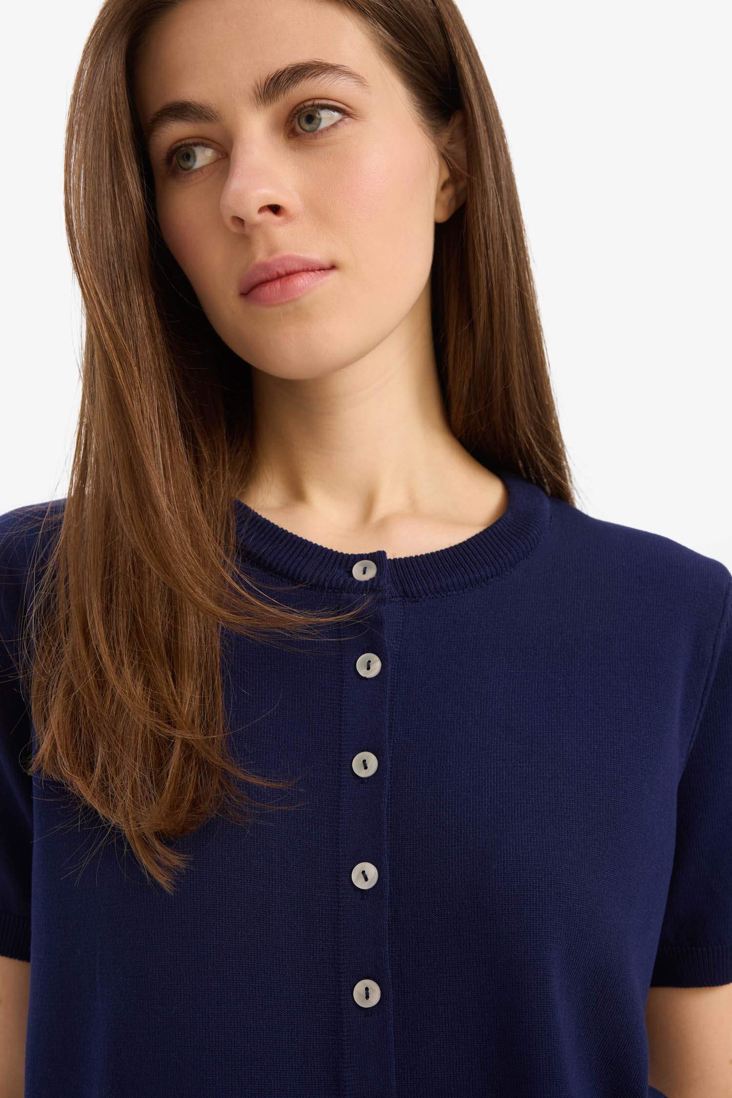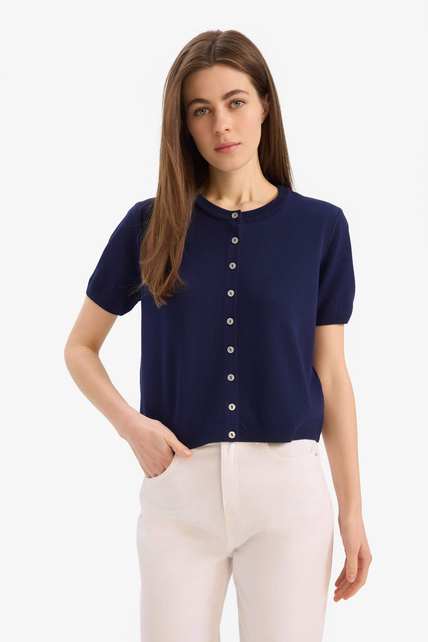 Regular Fit Crew Neck Basic Plain Knitwear Cardigan