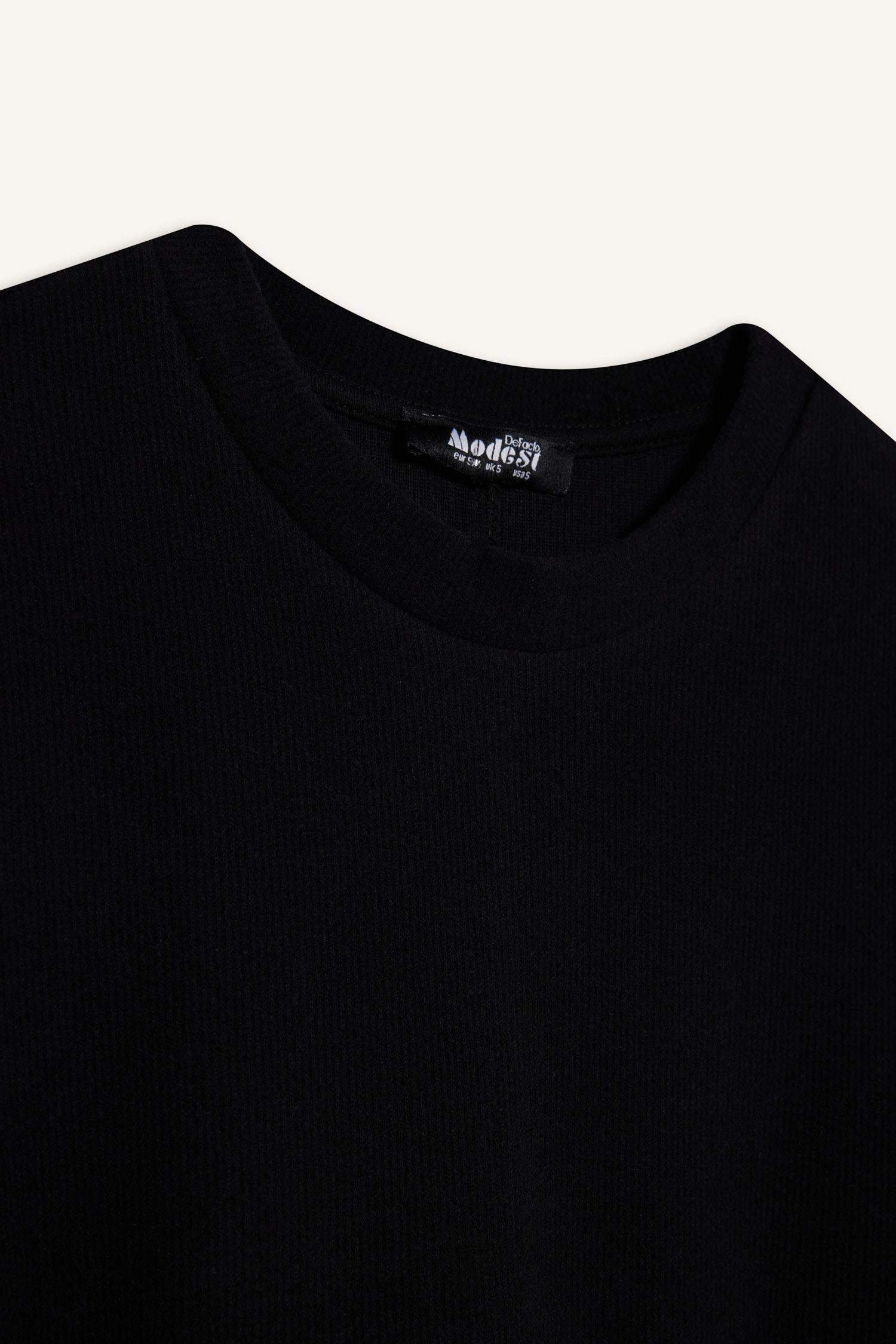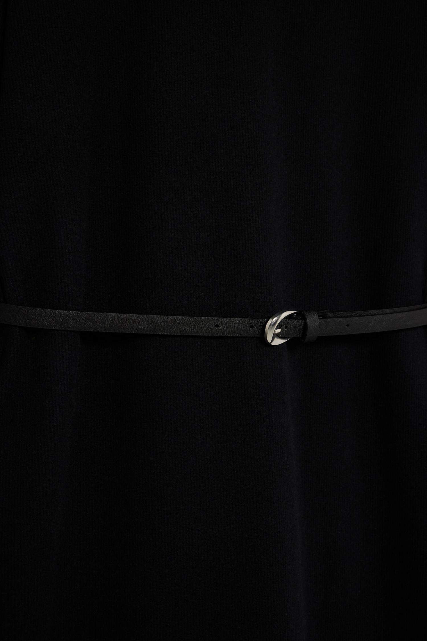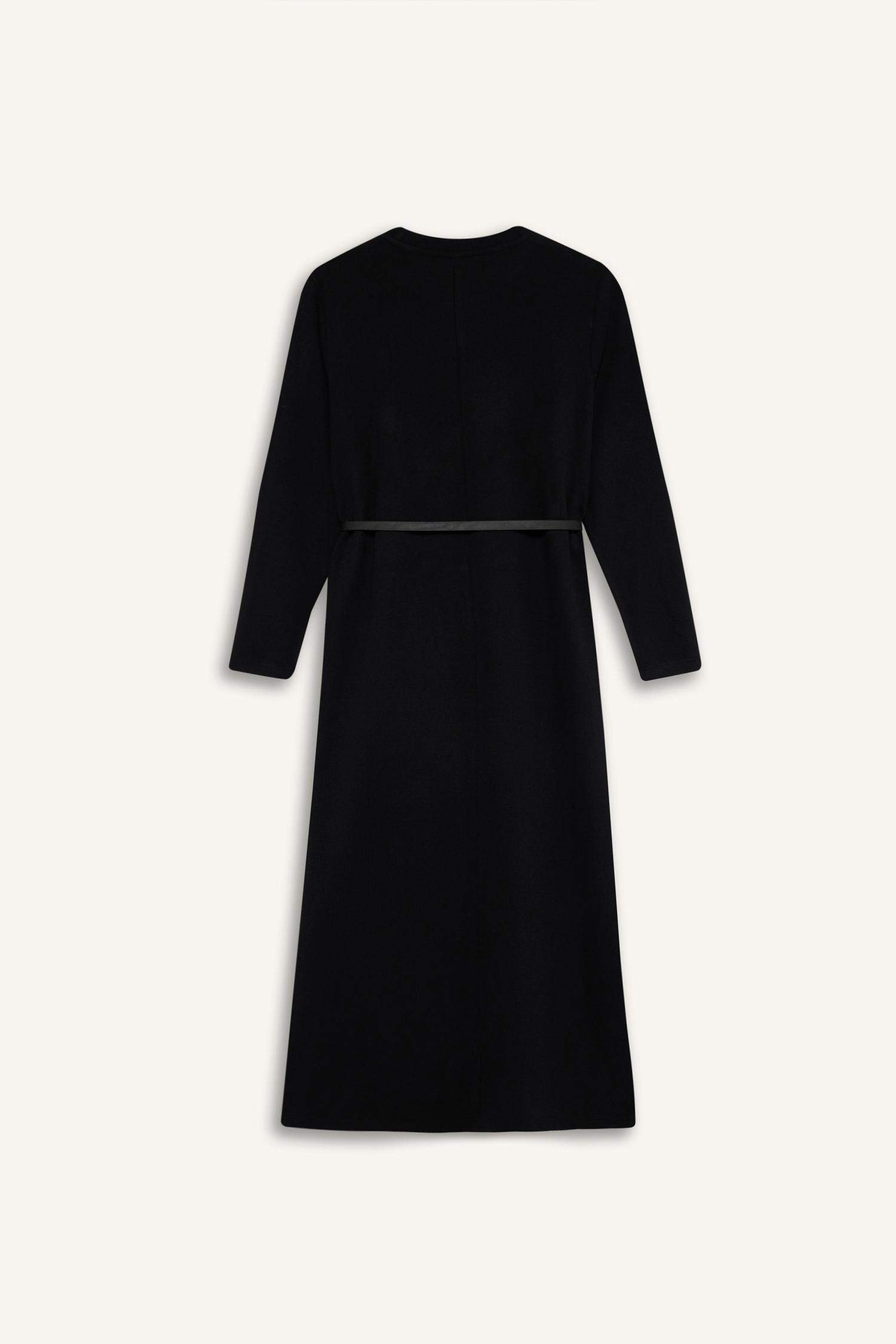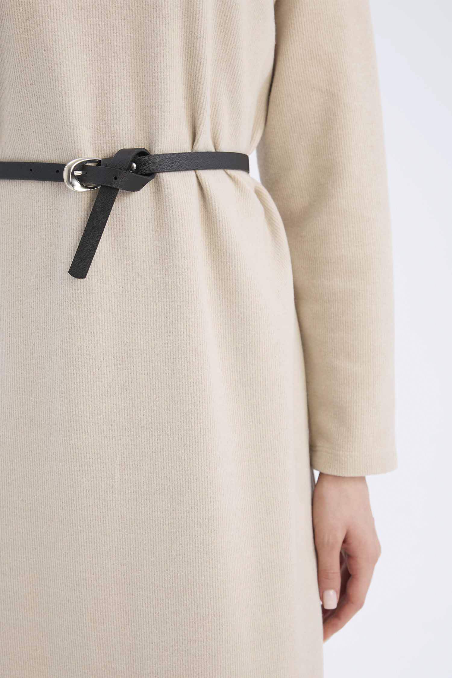 Regular Fit Crew Neck Belted Selanik Fabric Maxi Dress
