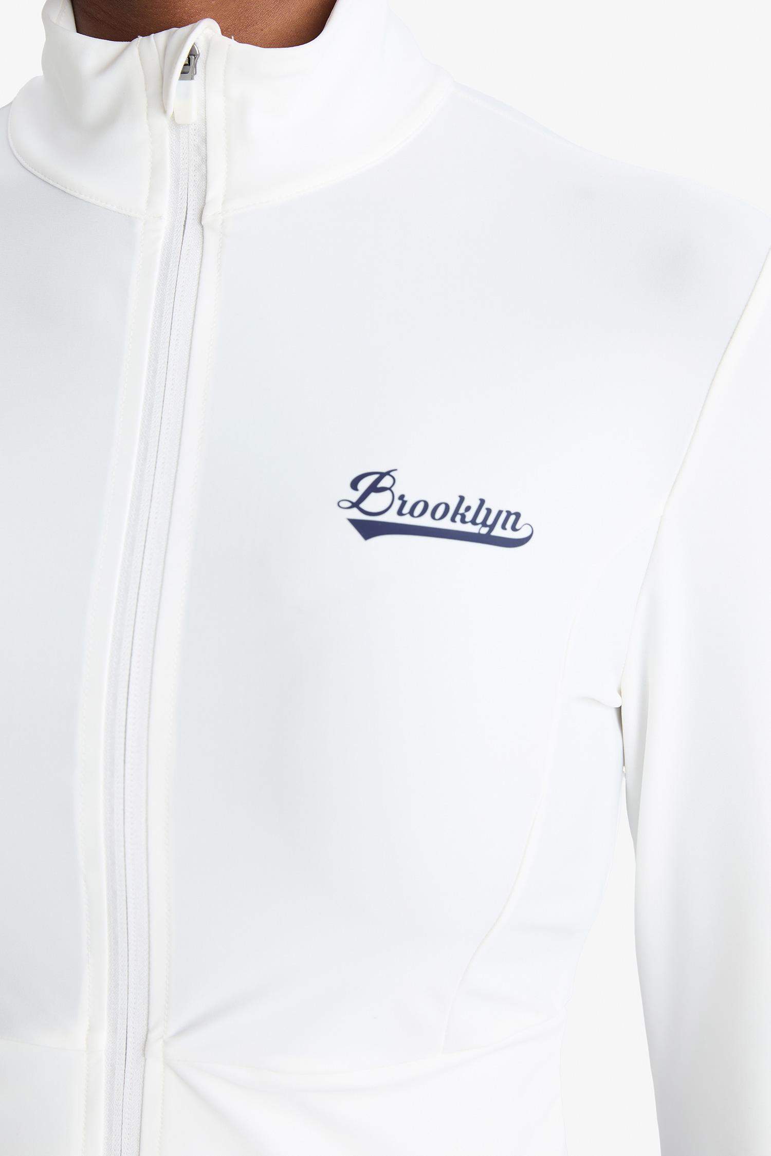 DeFactoFit Slim Fit Slim Cut Stand Collar Printed Ultra Flexible Zippered Cardigan