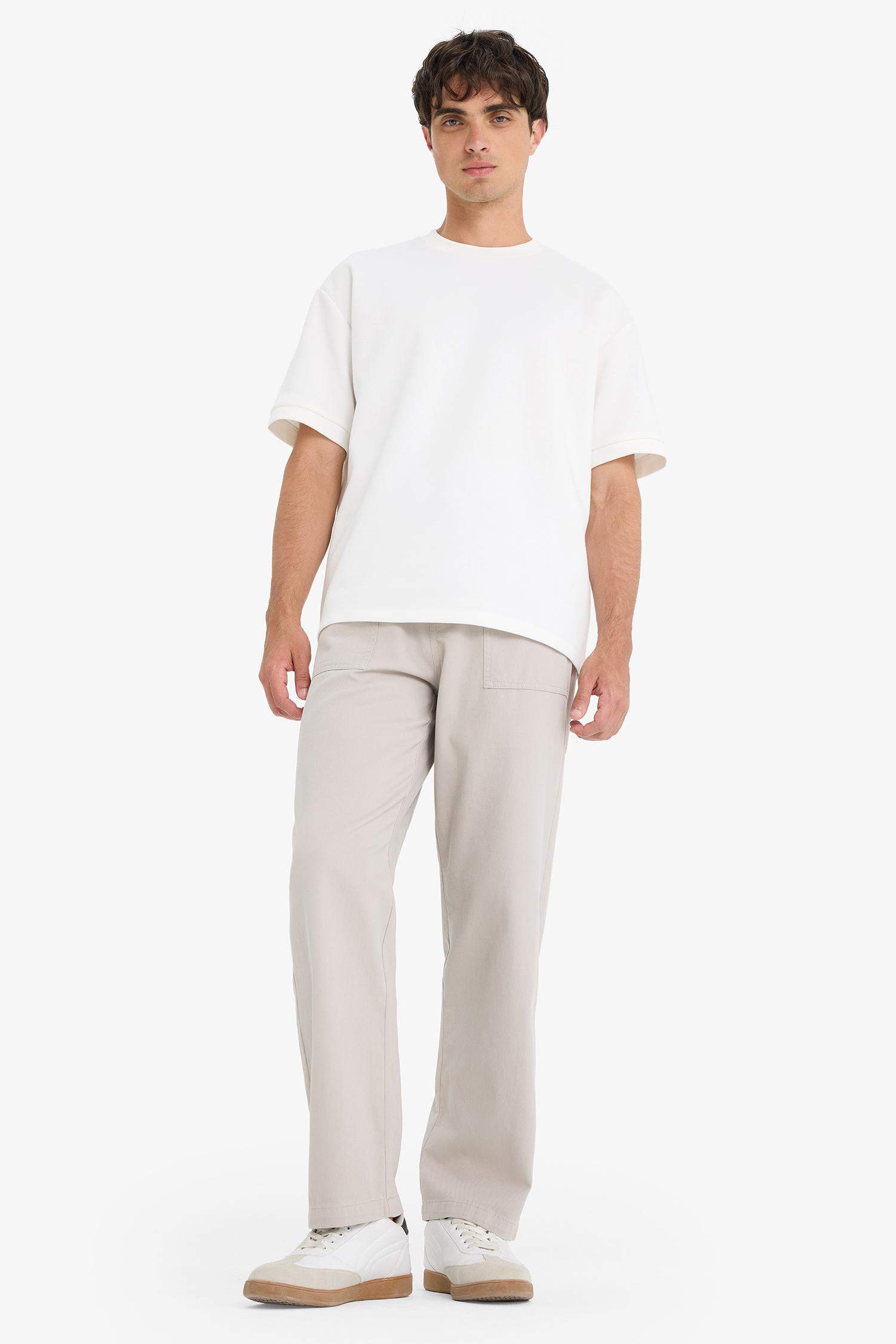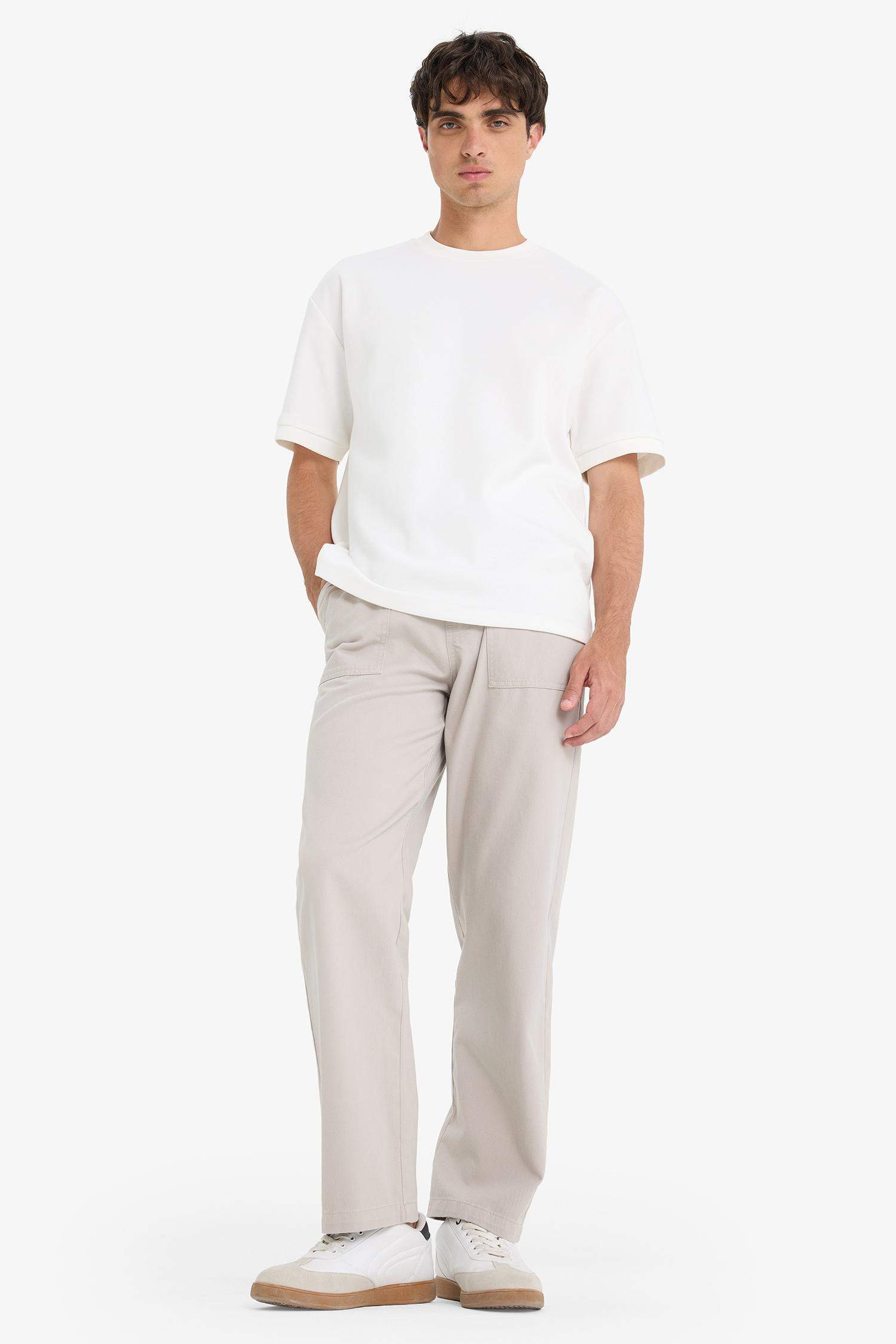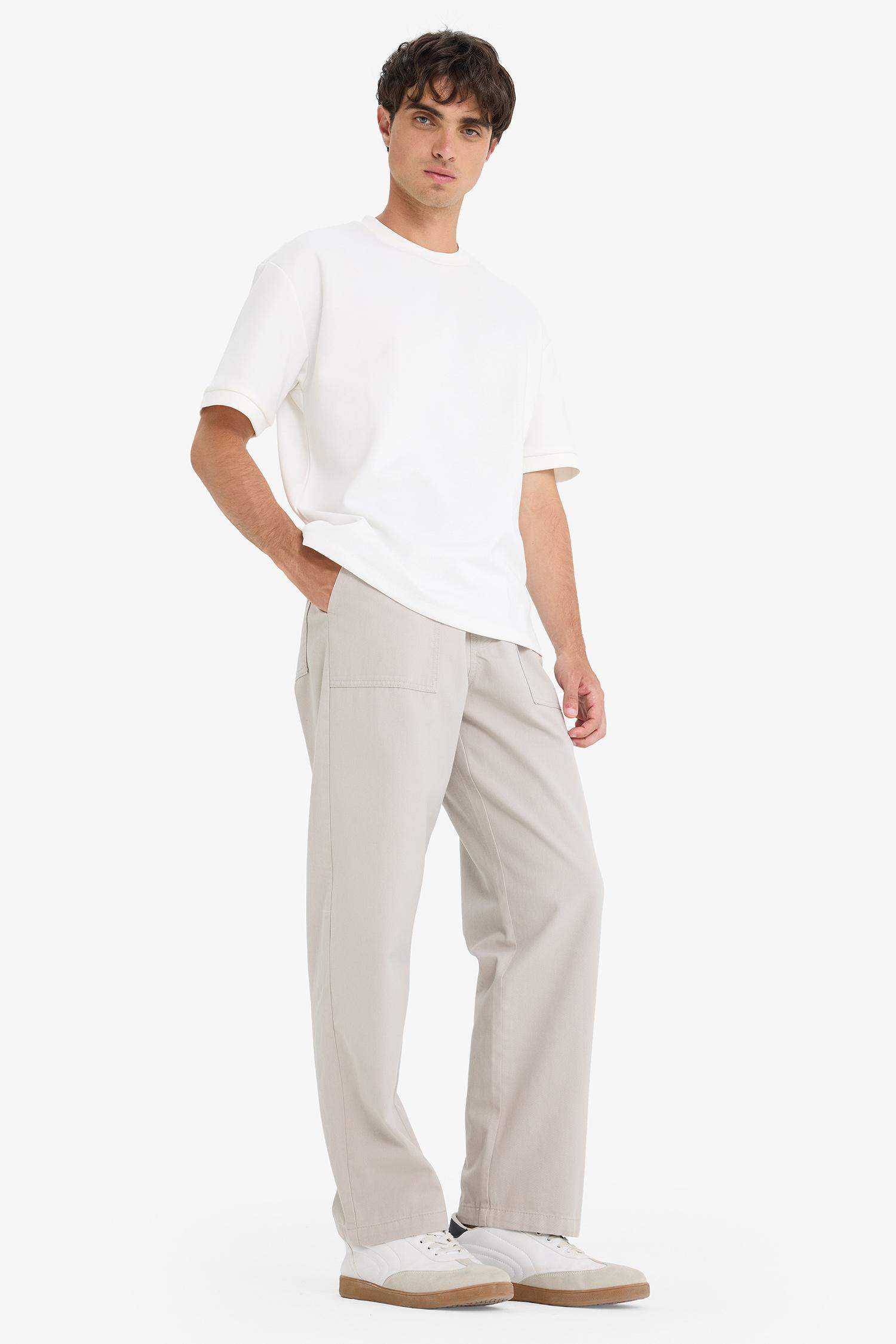 Wide Leg Regular Hem Patch Pocket Gabardine Trousers