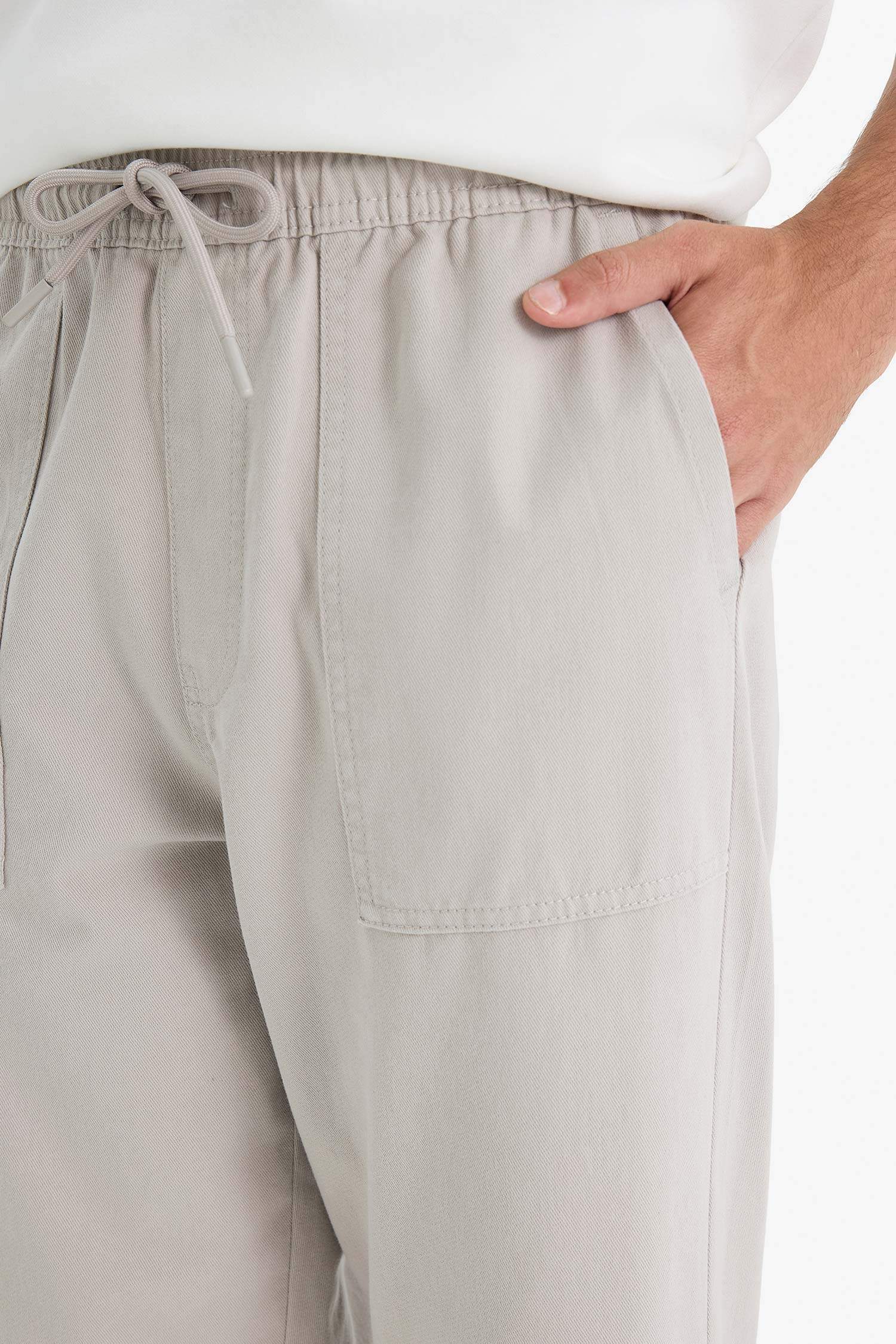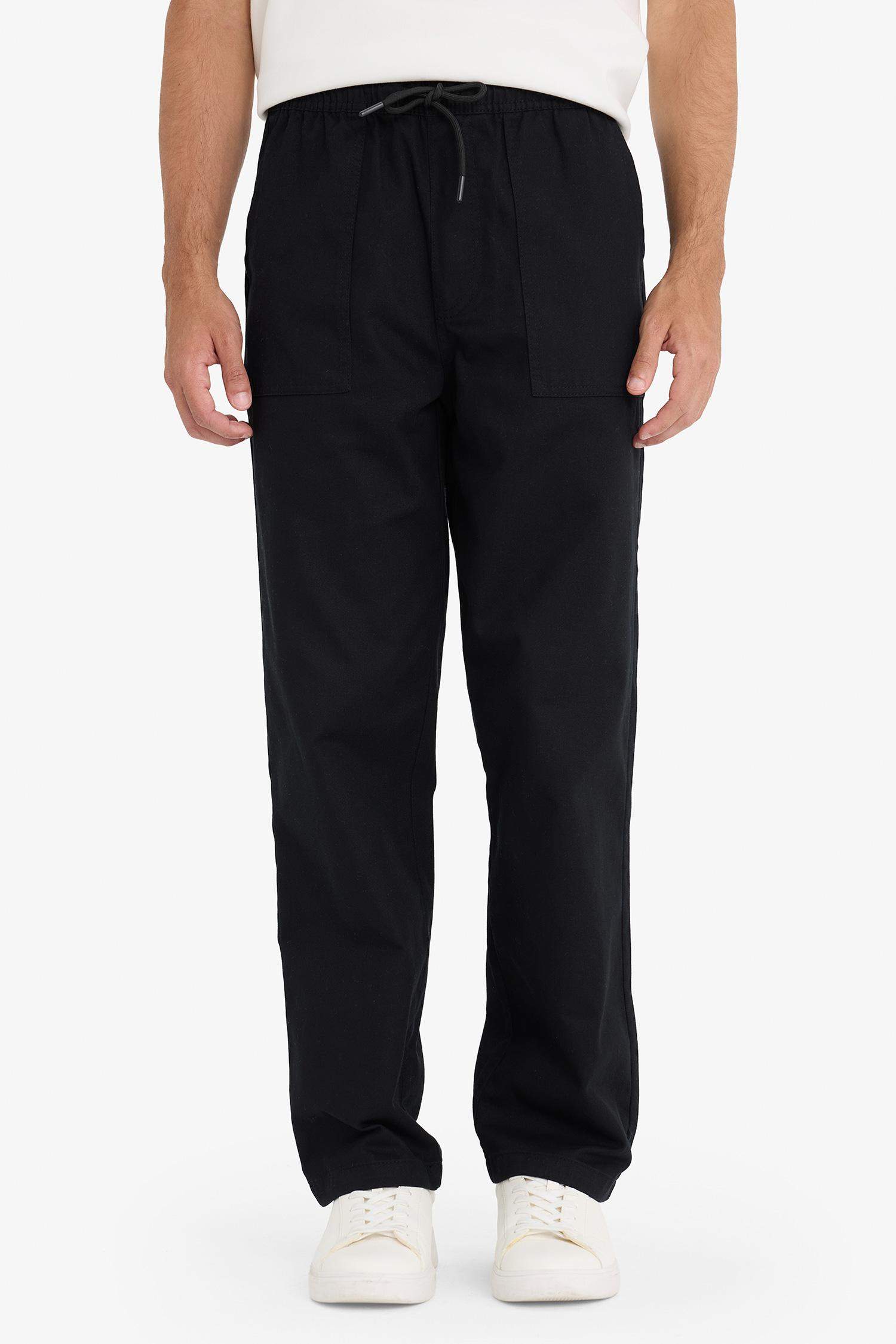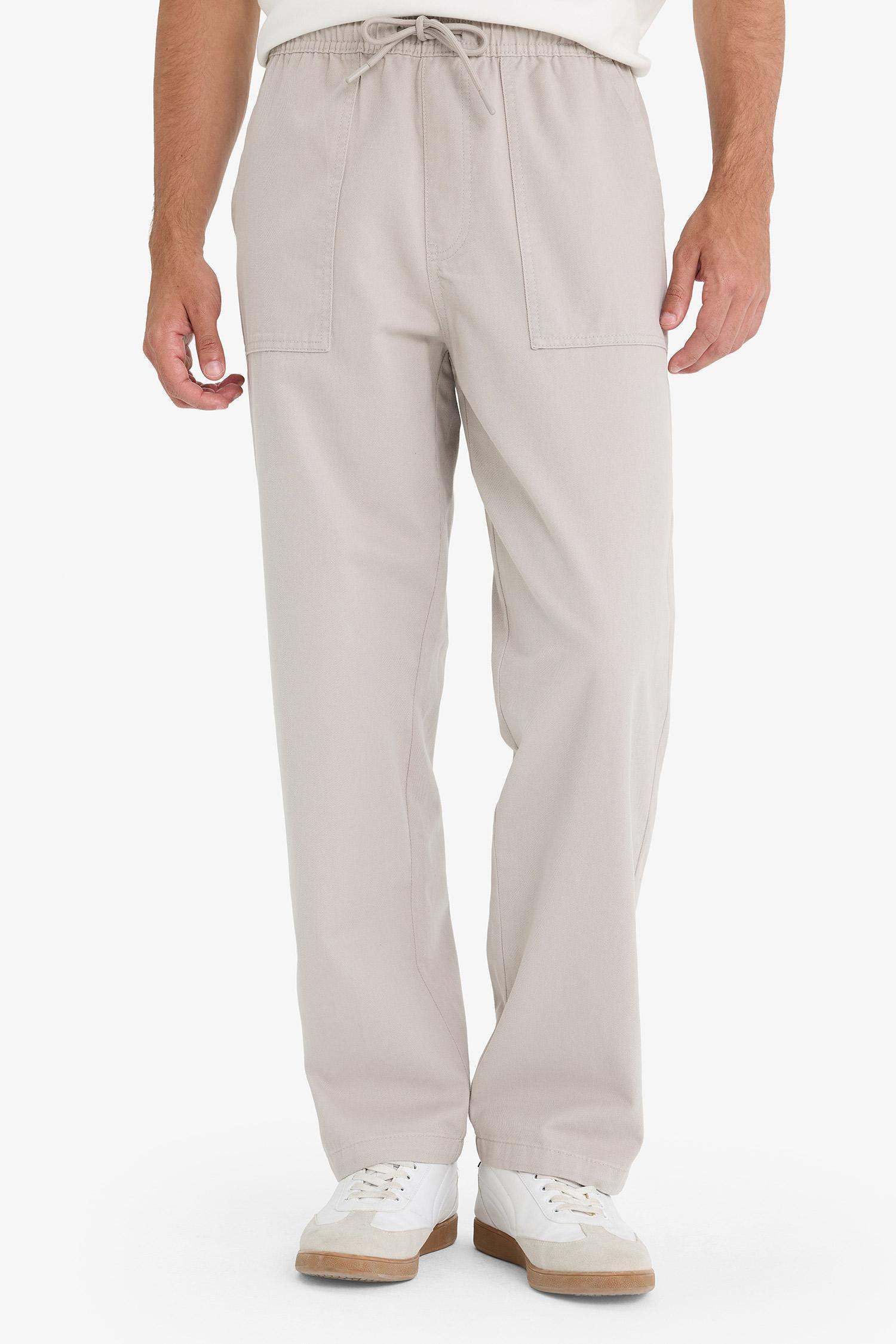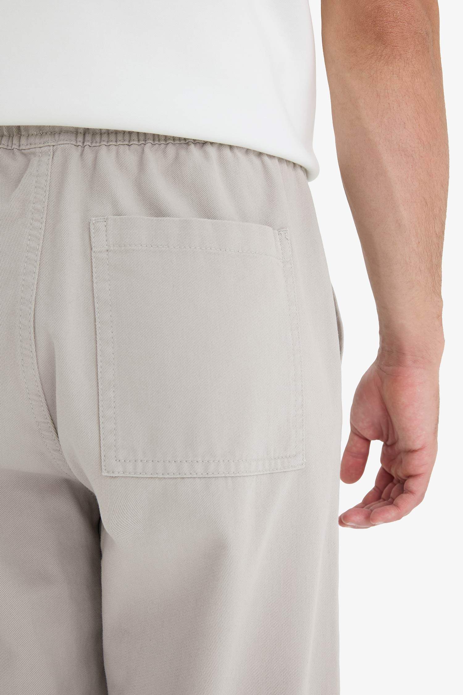 Wide Leg Regular Hem Patch Pocket Gabardine Trousers