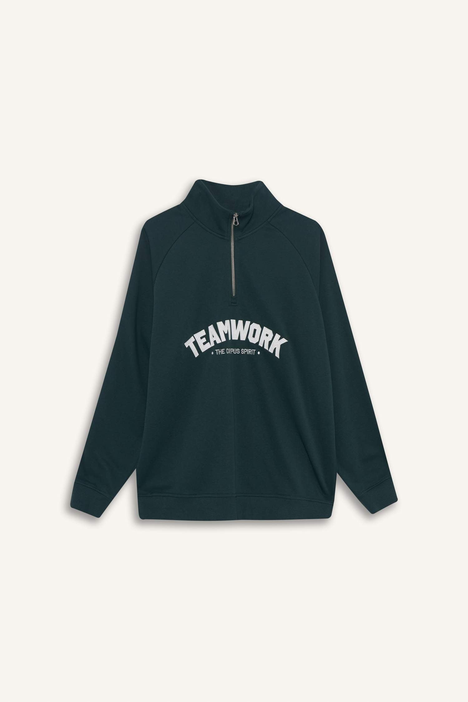 Boxy Fit Stand Collar Half Zipper Printed Sweatshirt