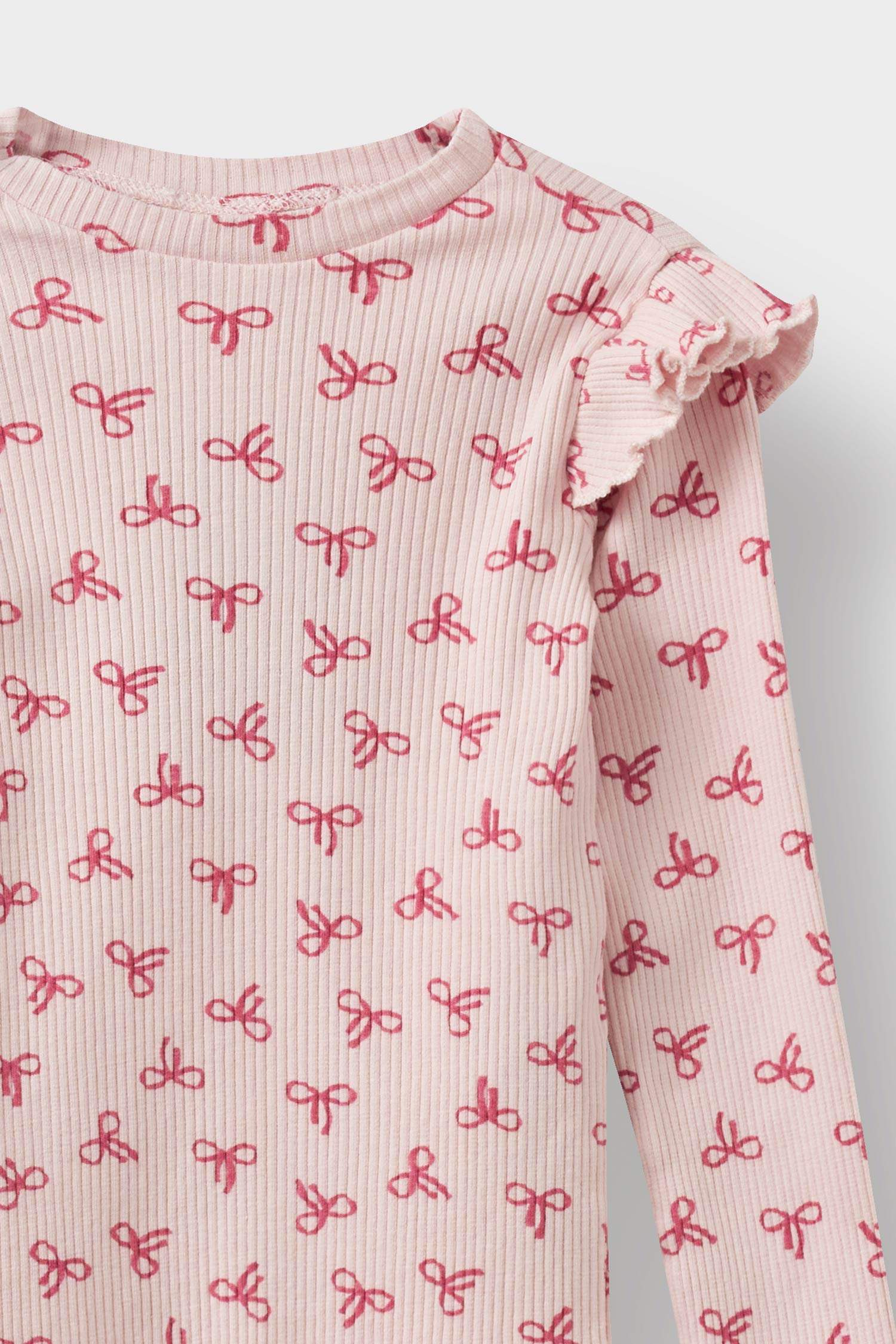 Baby Girl Crew Neck Ribbed Camisole Patterned Long Sleeve T-Shirt