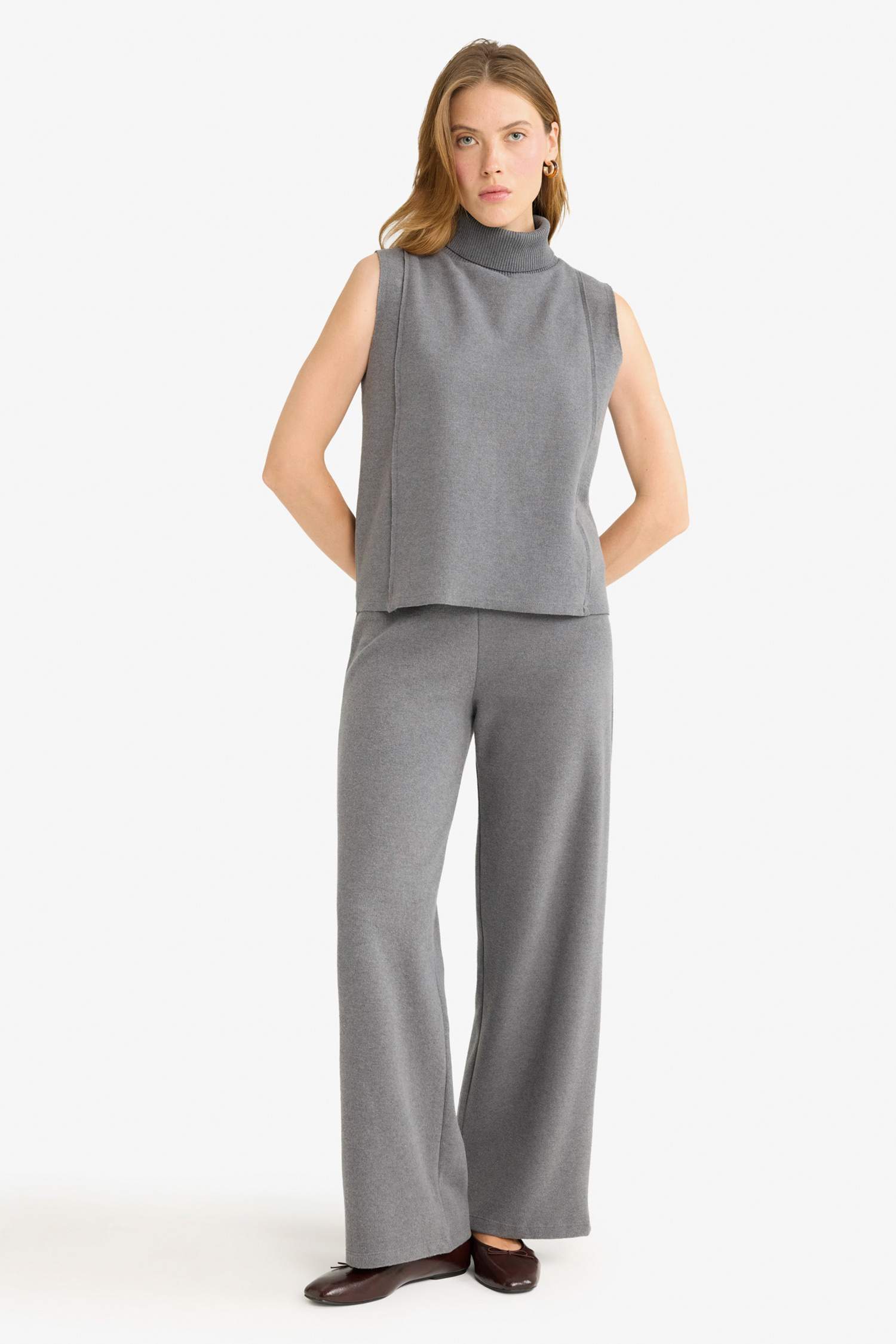 Straight Fit Wide Leg Trousers