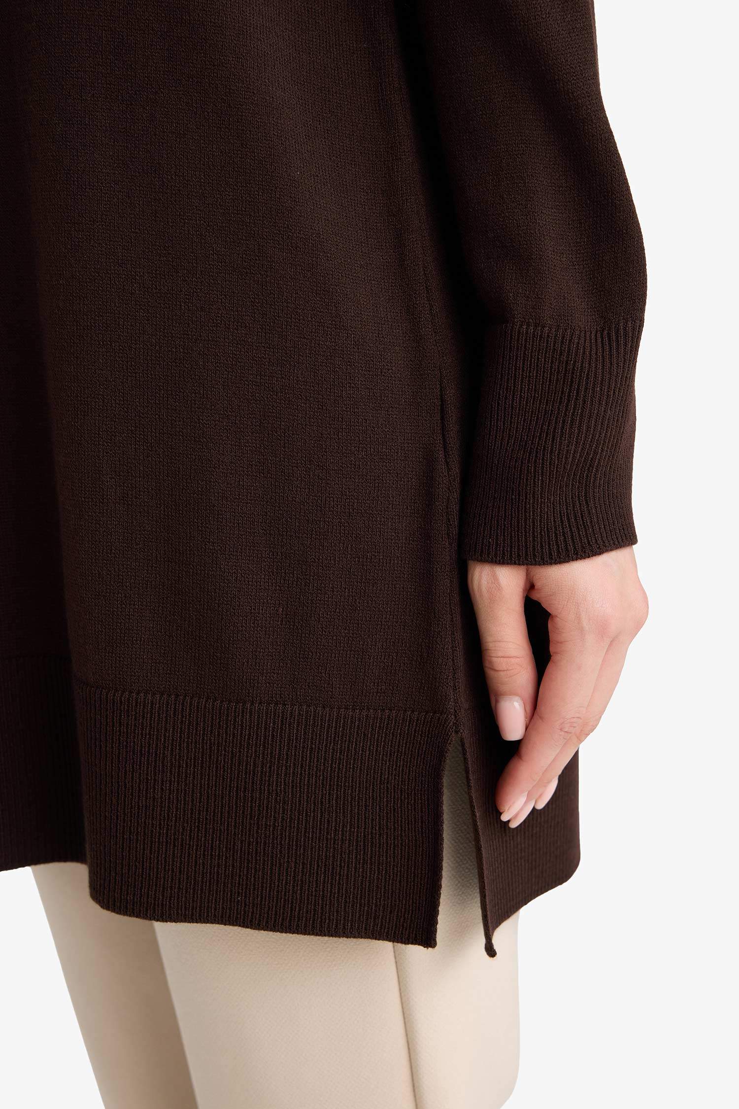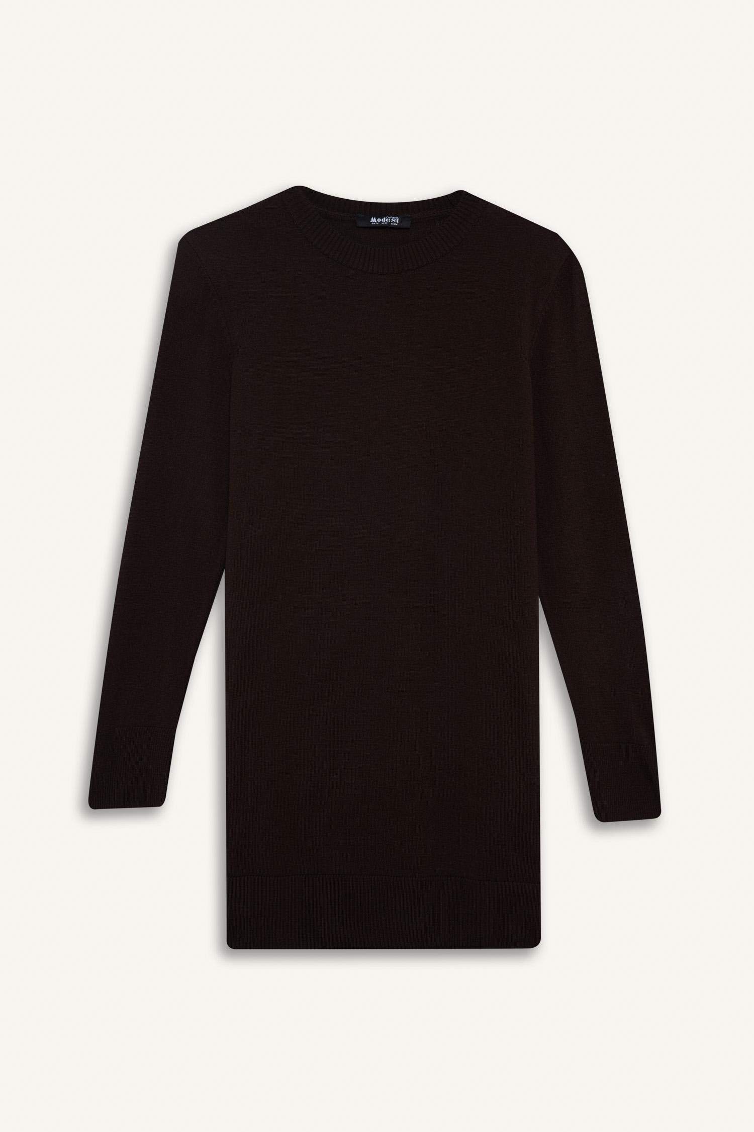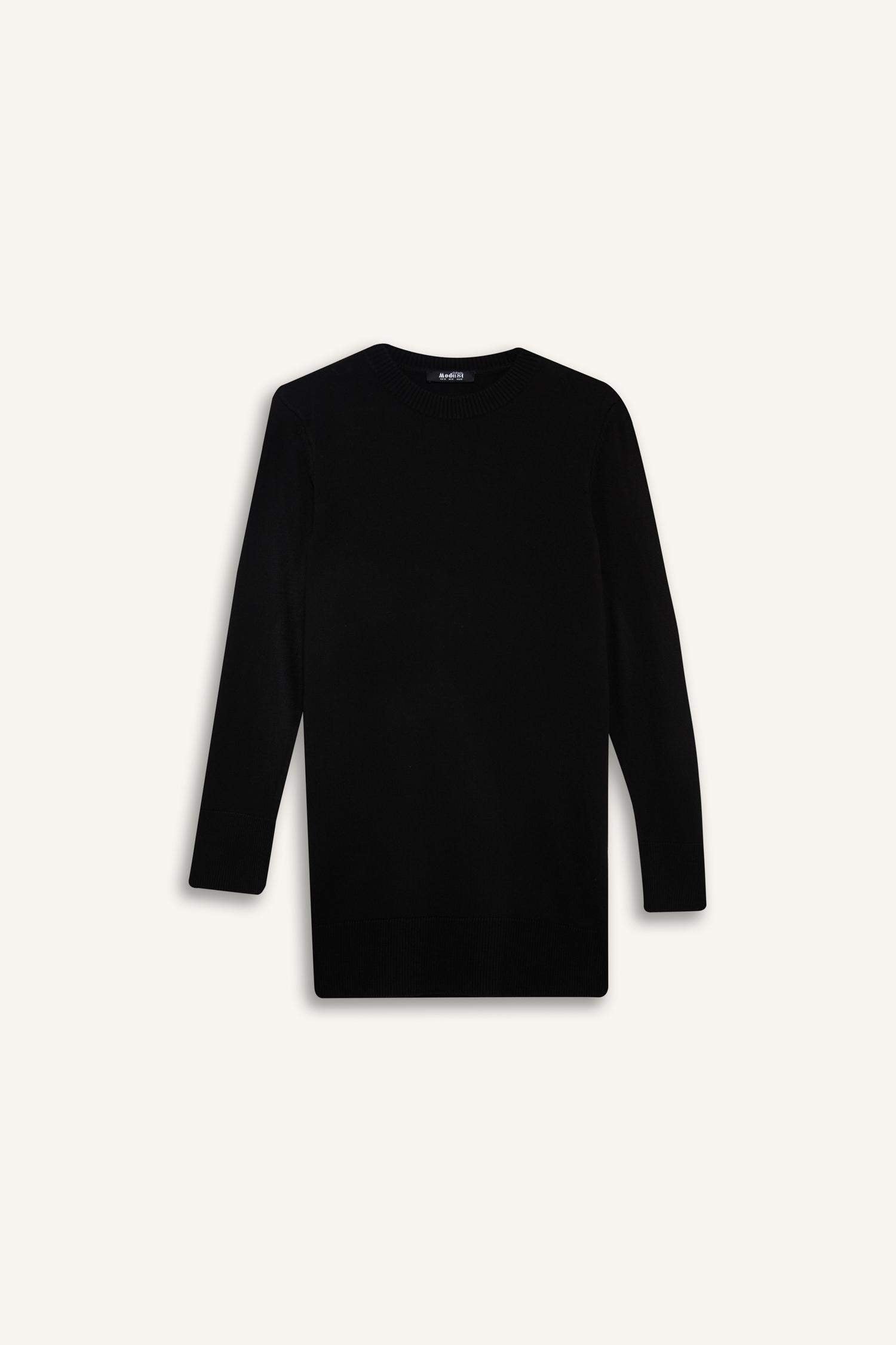 Regular Fit Crew Neck Slit Basic Plain Knitwear Sweater Tunic