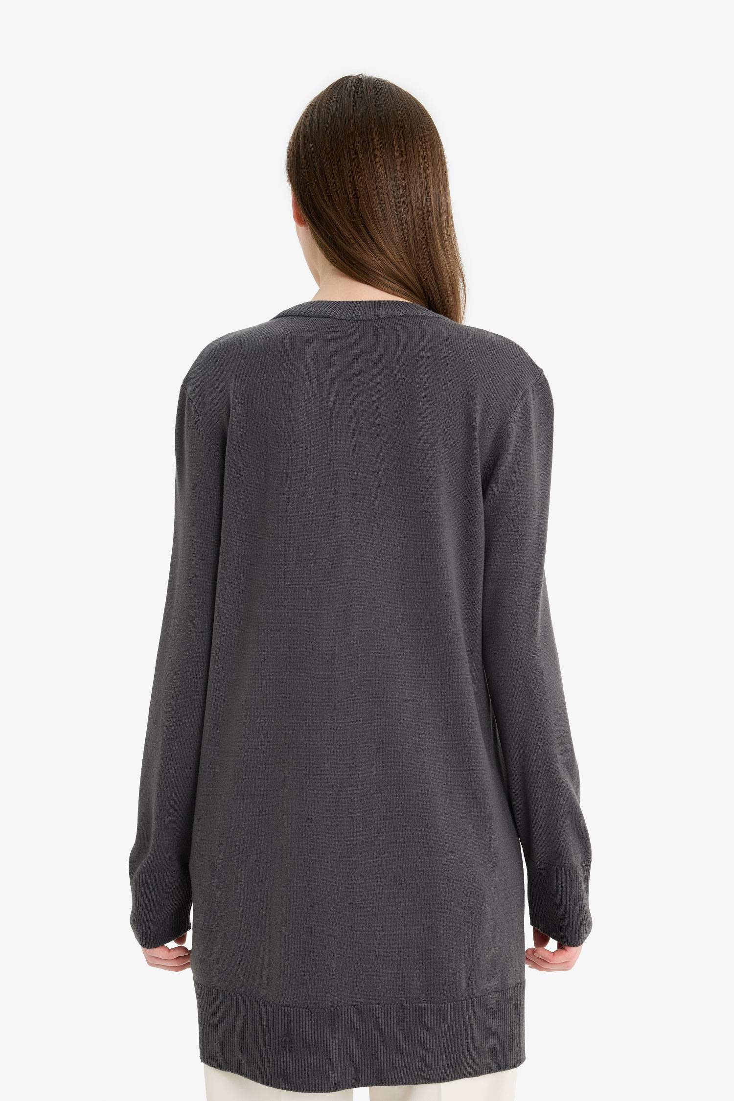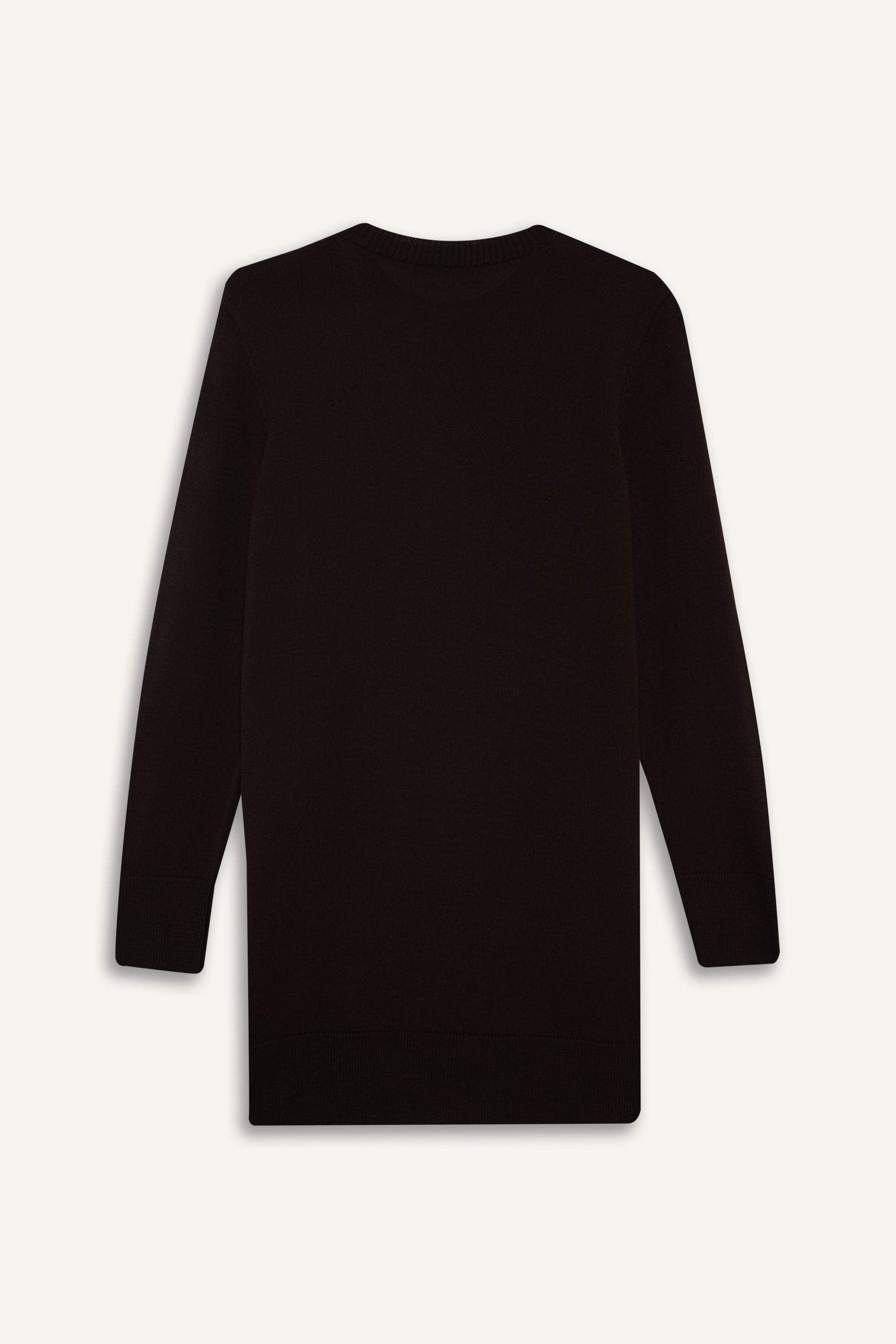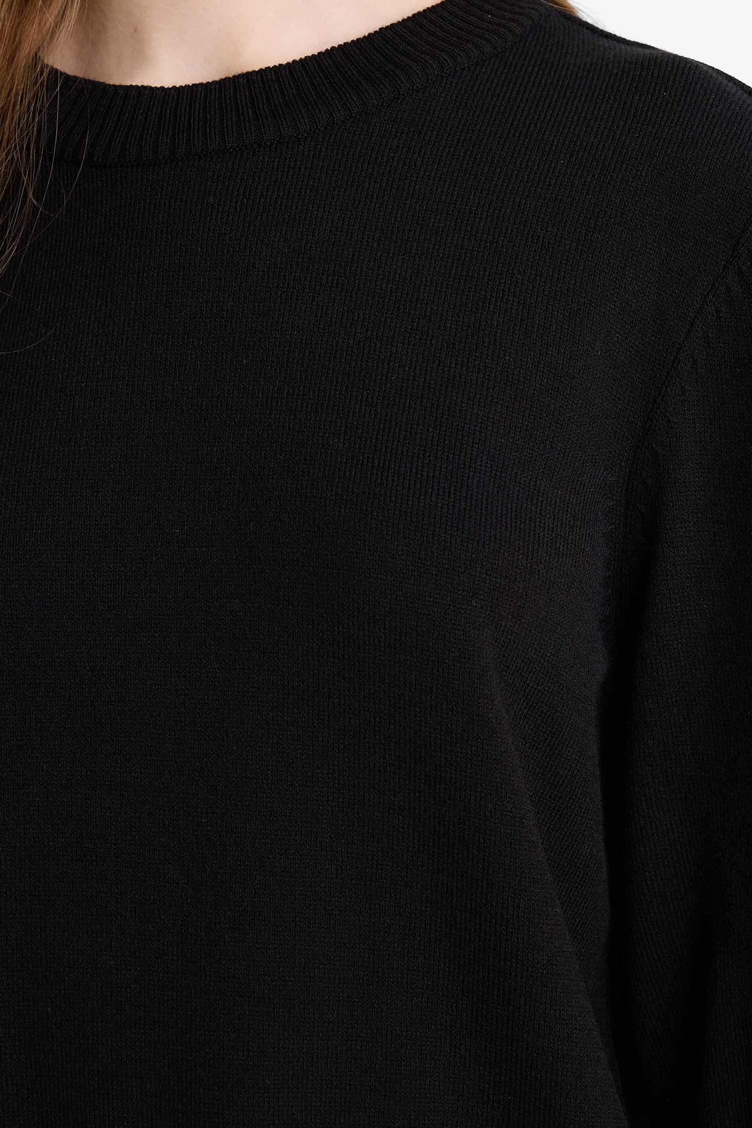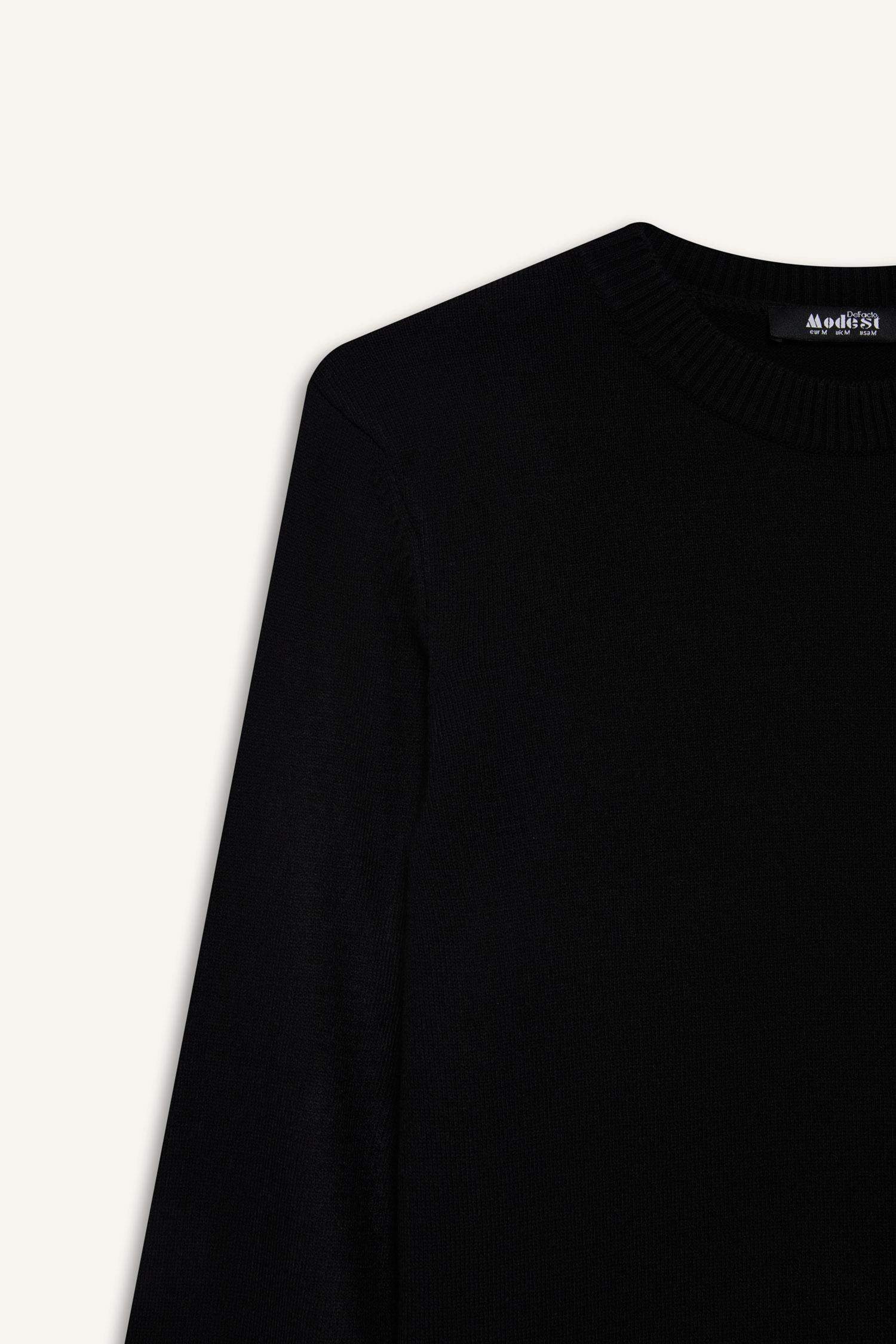 Regular Fit Crew Neck Slit Basic Plain Knitwear Sweater Tunic