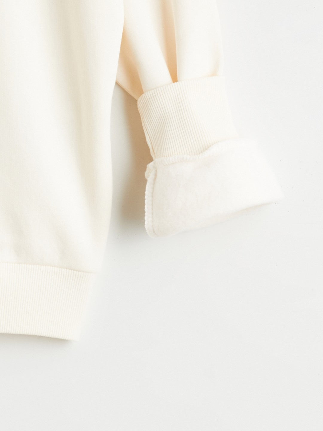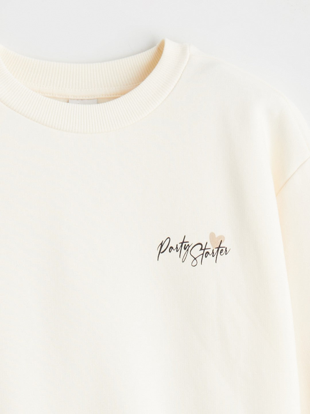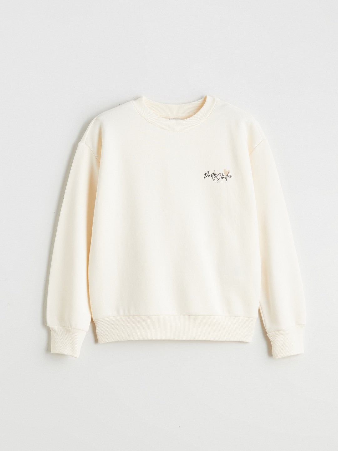 Girls sweatshirt with front and back print, manufactured from 3 thread inside brushed fabric. Cuffs and hem are ribbed.