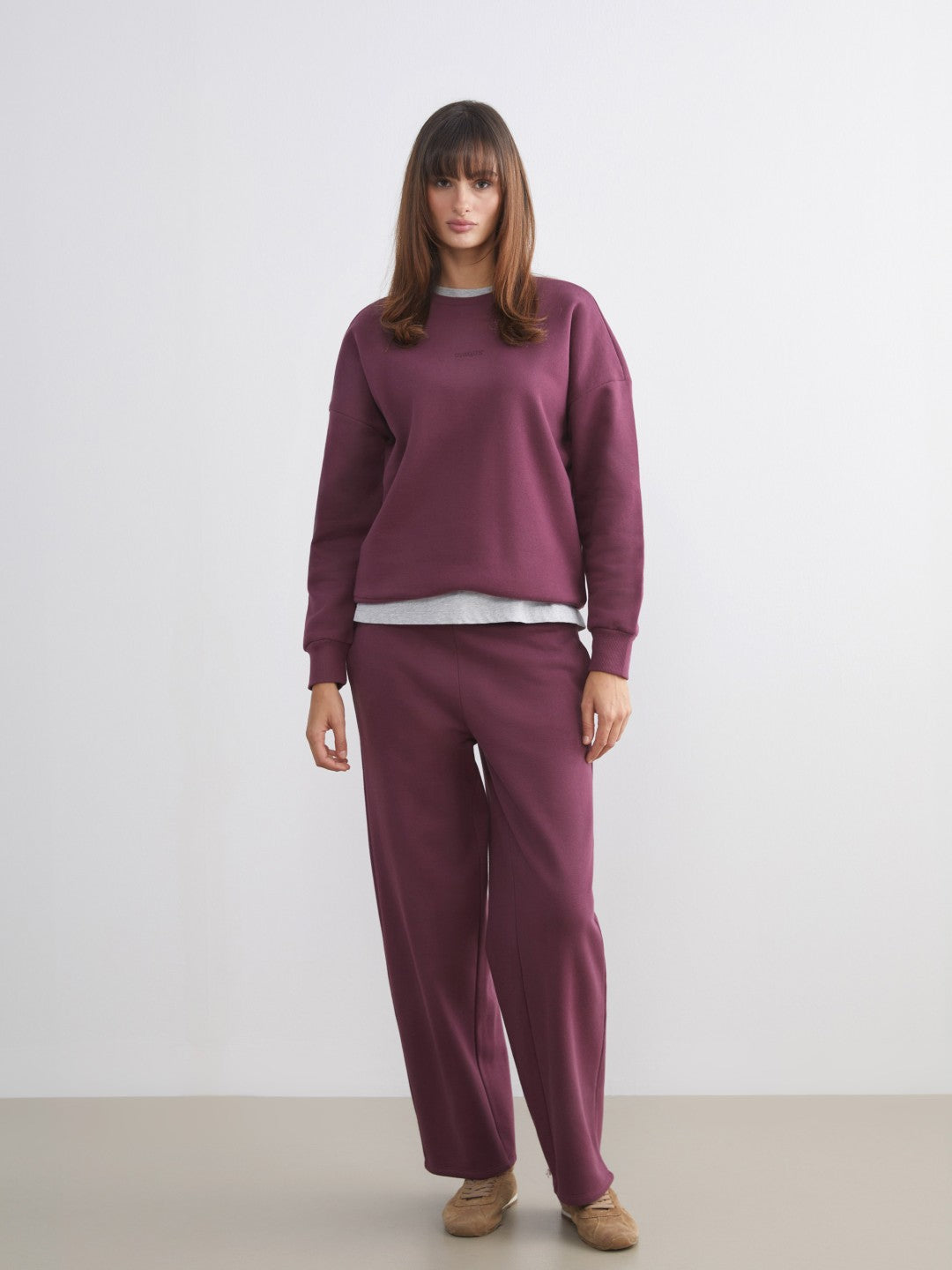 Crew neck, long sleeve and drop shoulder Women sweatshirt Ribbed cuffs and hem, with slit detail at the hem