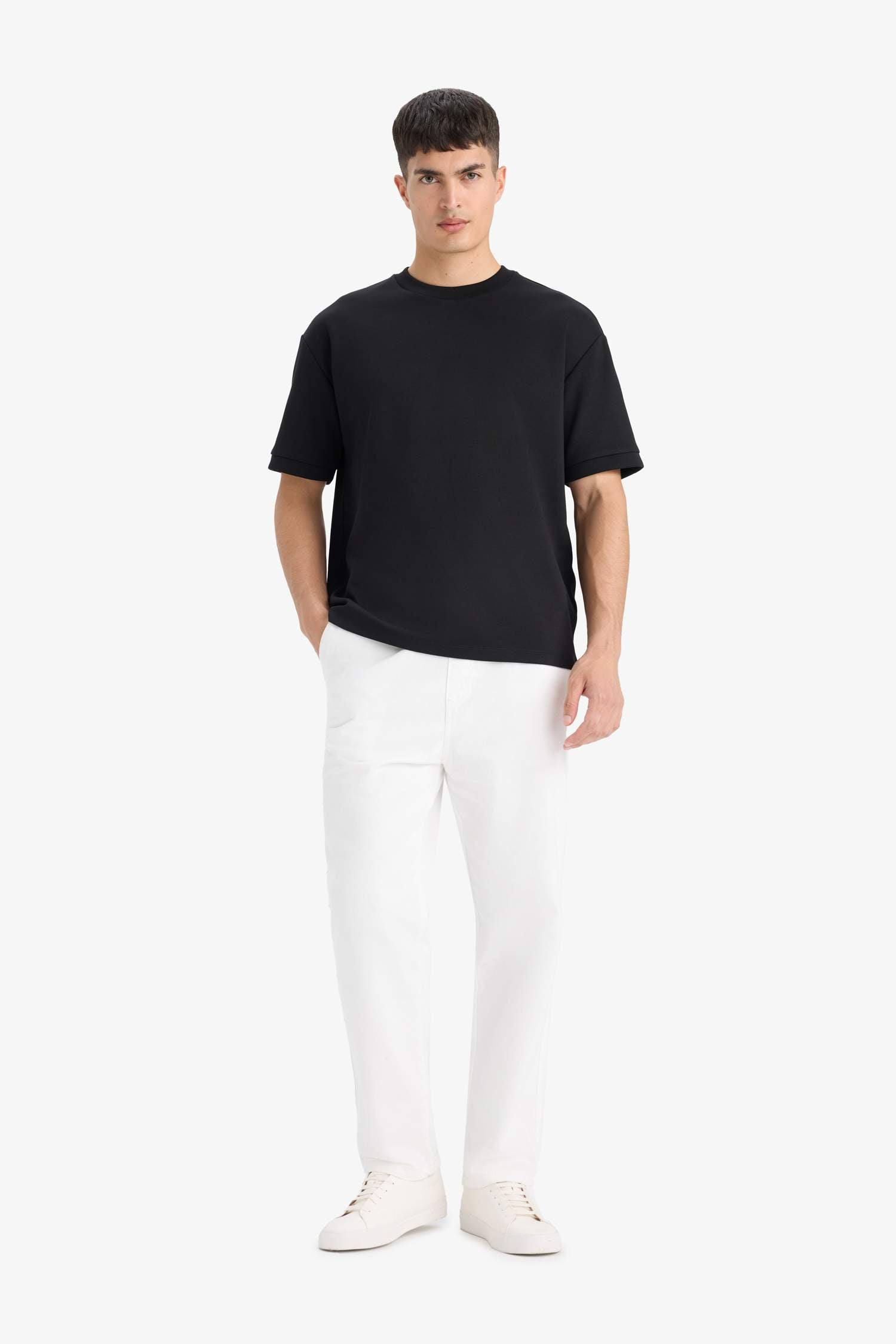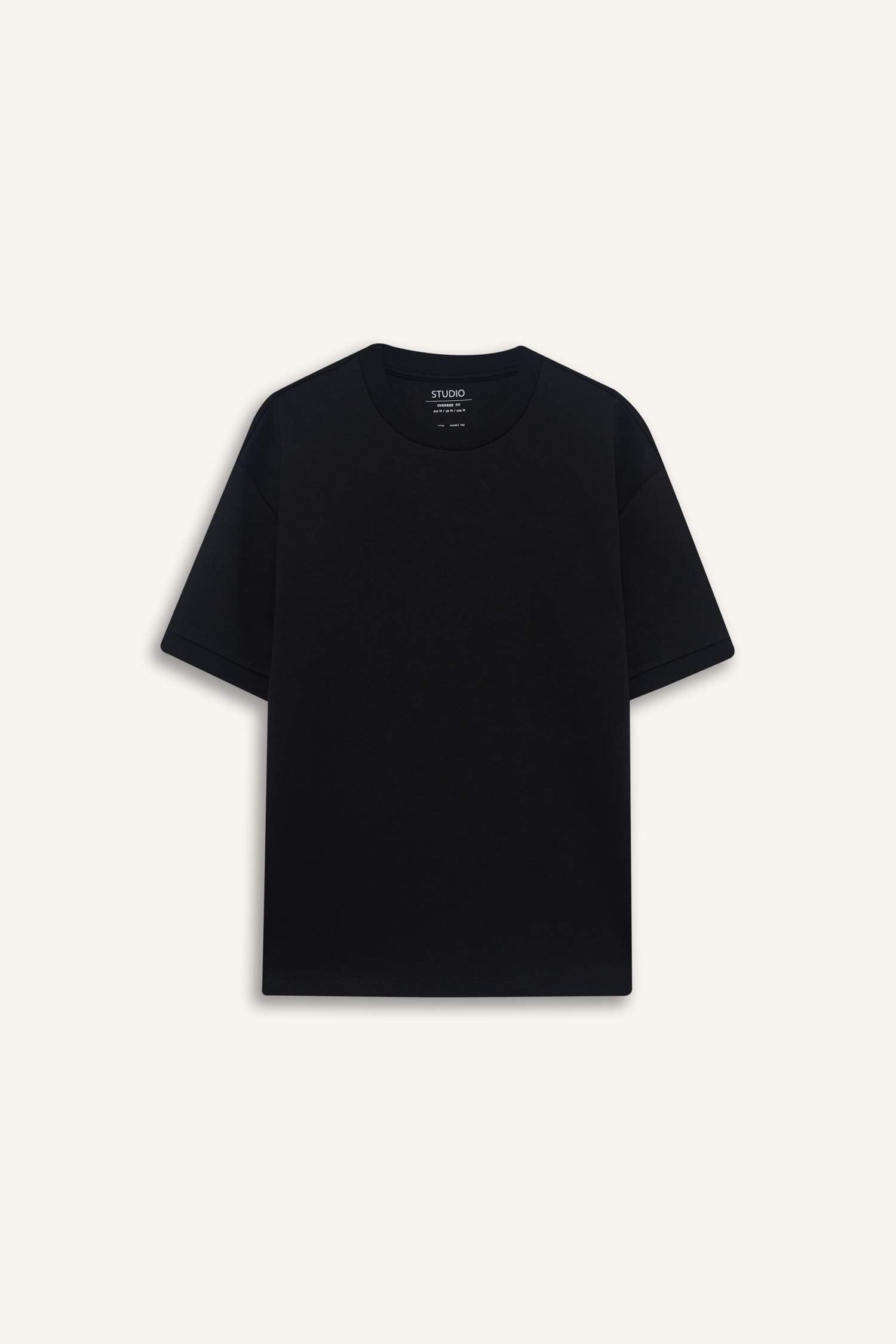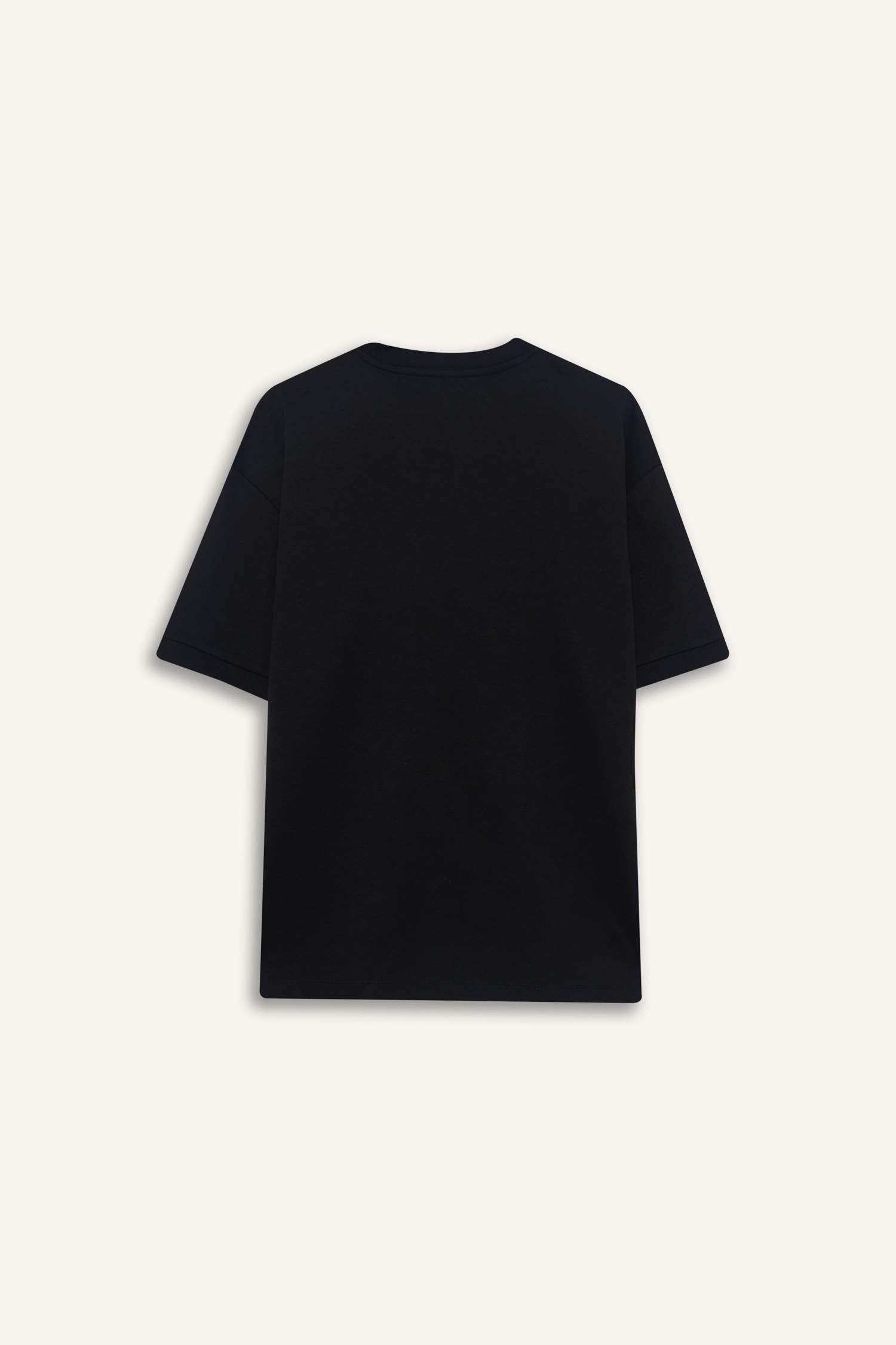 Oversize Loose Fit Crew Neck Heavy Fabric Basic Plain Short Sleeve Black T-Shirt