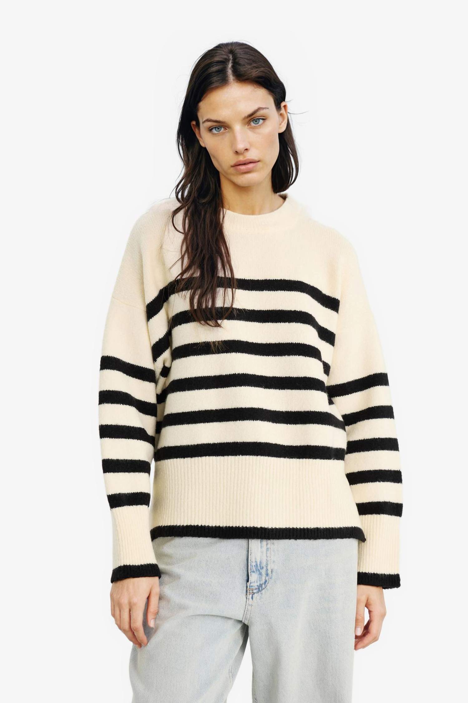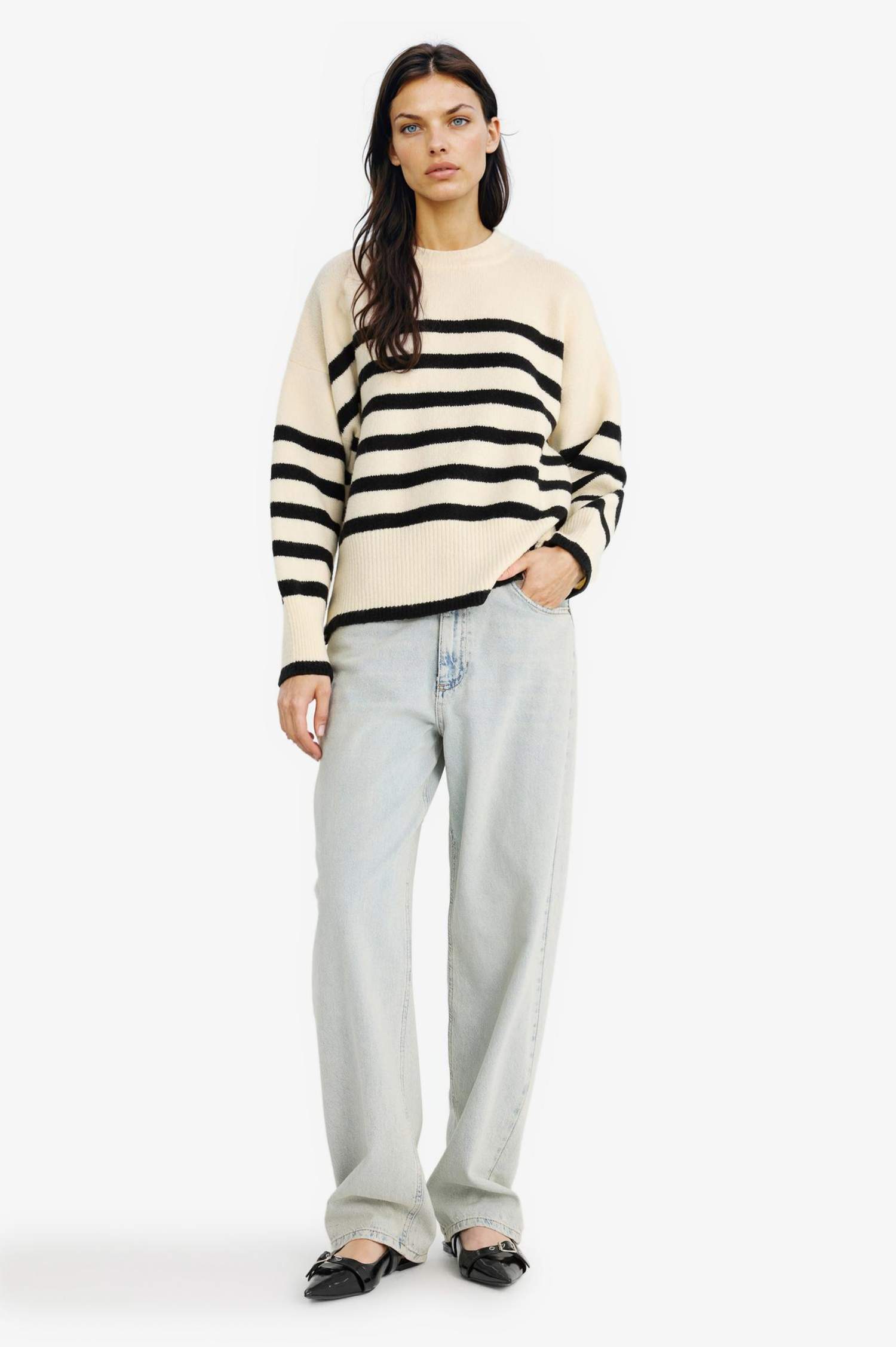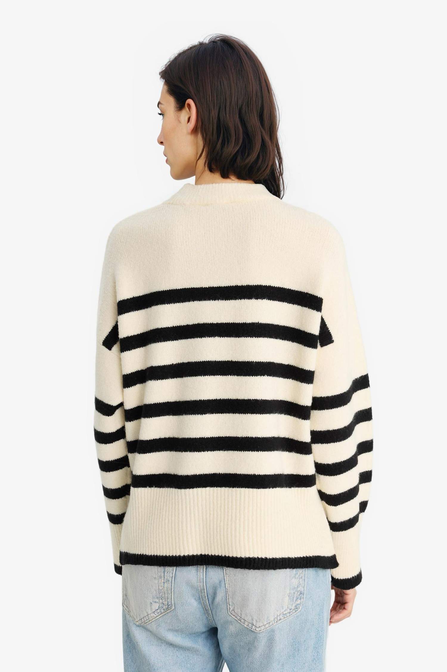 Oversize Loose Fit Half Turtleneck Striped Knit Sweater