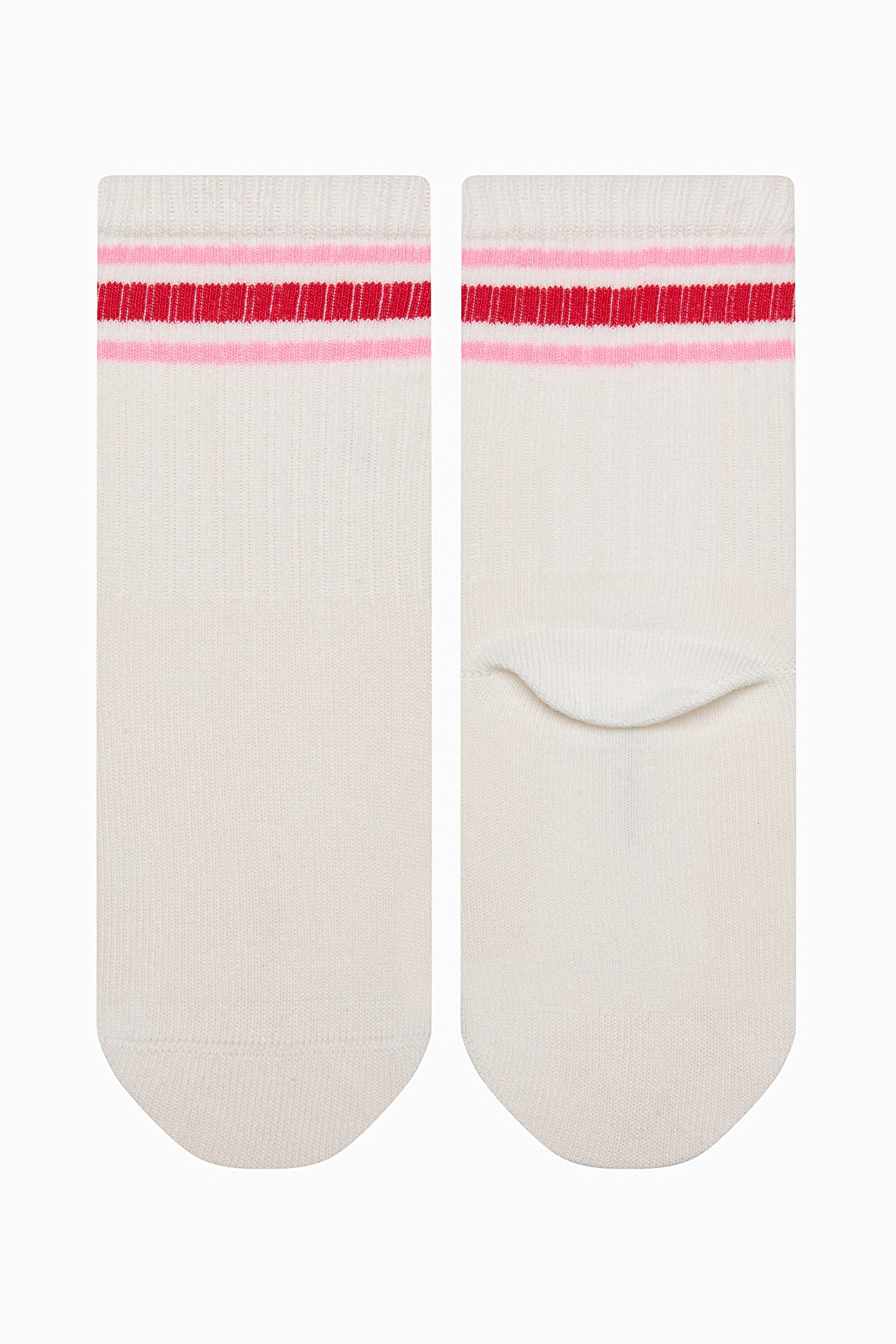 The cute Heart 3-Pack Tns Socks add joy to girls' style. The first sock offers an elegant look with a red heart figure on a white background. The second sock creates a sweet and fun atmosphere with tiny red hearts scattered on a pink background. The third sock provides a dynamic style with red and pink lines on a white background. Thanks to its comfortable structure, it can be worn comfortably all day long. Buy this sock set, where cuteness and comfort come together, now!Material