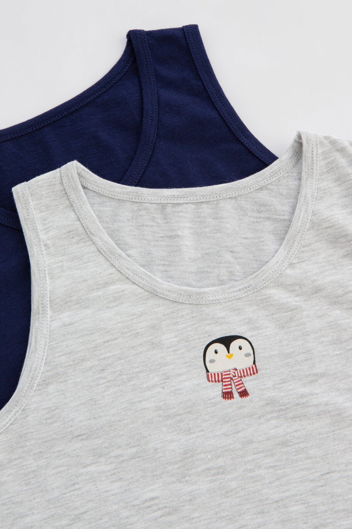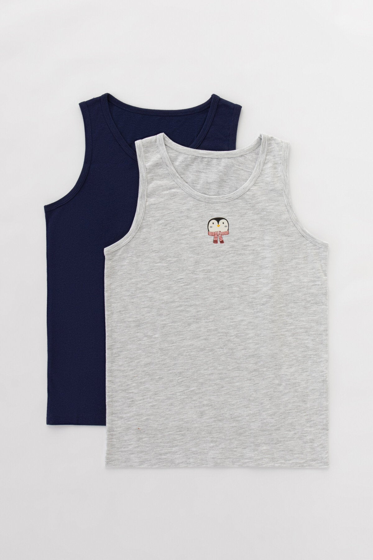 Children who do not compromise on elegance will enjoy comfort with the Boy's Penguin 2-Piece Undershirt! The Boy's Penguin 2-Piece Undershirt, which hugs children's delicate skin with soft touches thanks to its cotton texture, brings together two undershirts in gray and navy blue colors. While the navy blue tank top is indispensable for combinations with its minimal design, the gray tank top creates a big smile on children's faces with its cute penguin image. Boy's Penguin 2-Piece Undershirt easily adapts to the body of the little ones with its flexible structure and provides a unique comfort experience. Its thick straps remain stable even in the most active moments of children, making them feel free and happy all day long. By combining the Boy's Penguin 2-Piece Undershirt with the Boy's Penguin 2-Piece Boxer, children can achieve comfort and elegance together!