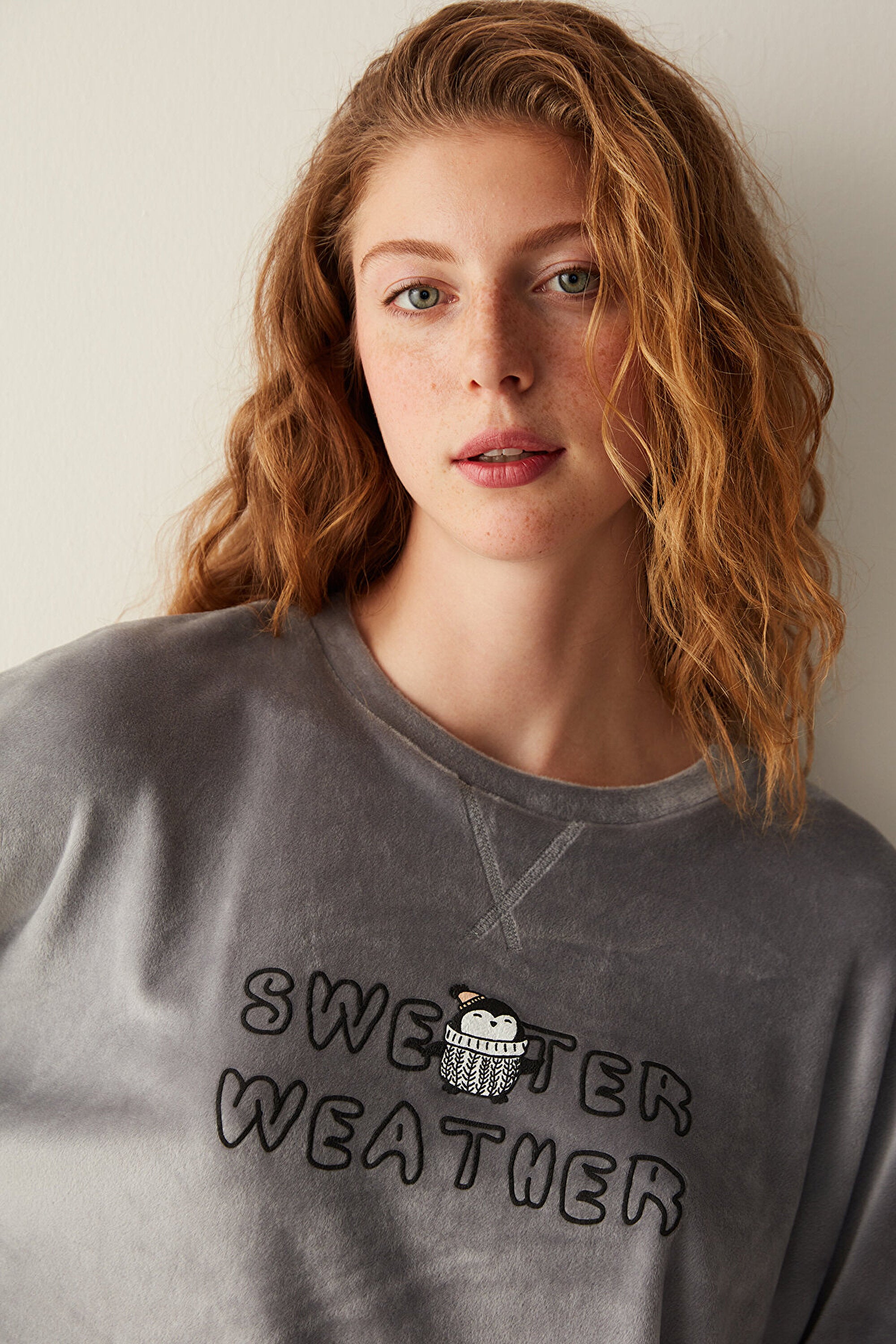 Cute Penguin Fuzzy Sweatshirt PJ Top