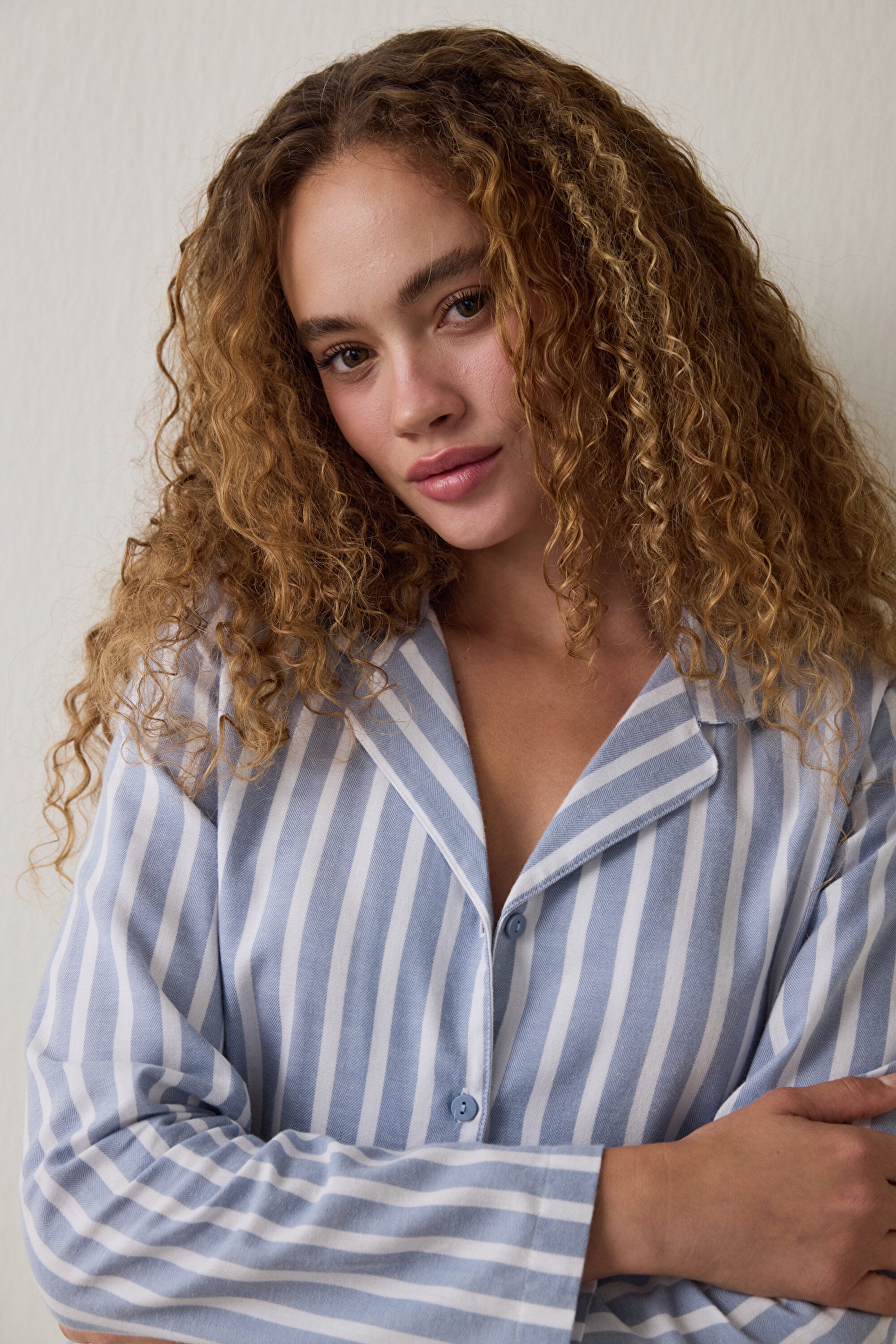 The Cozy Blue Stripes LS Shirt and Pant Set is sold as a set. Designed for comfort at home, this set's soft texture ensures all-day comfort. Its lightweight construction allows for freedom of movement, while its comfortable feel makes home moments more peaceful. It accompanies you through your daily routine, whether you're relaxing or spending time with loved ones. Make your choice now and enjoy the comfort of your home.