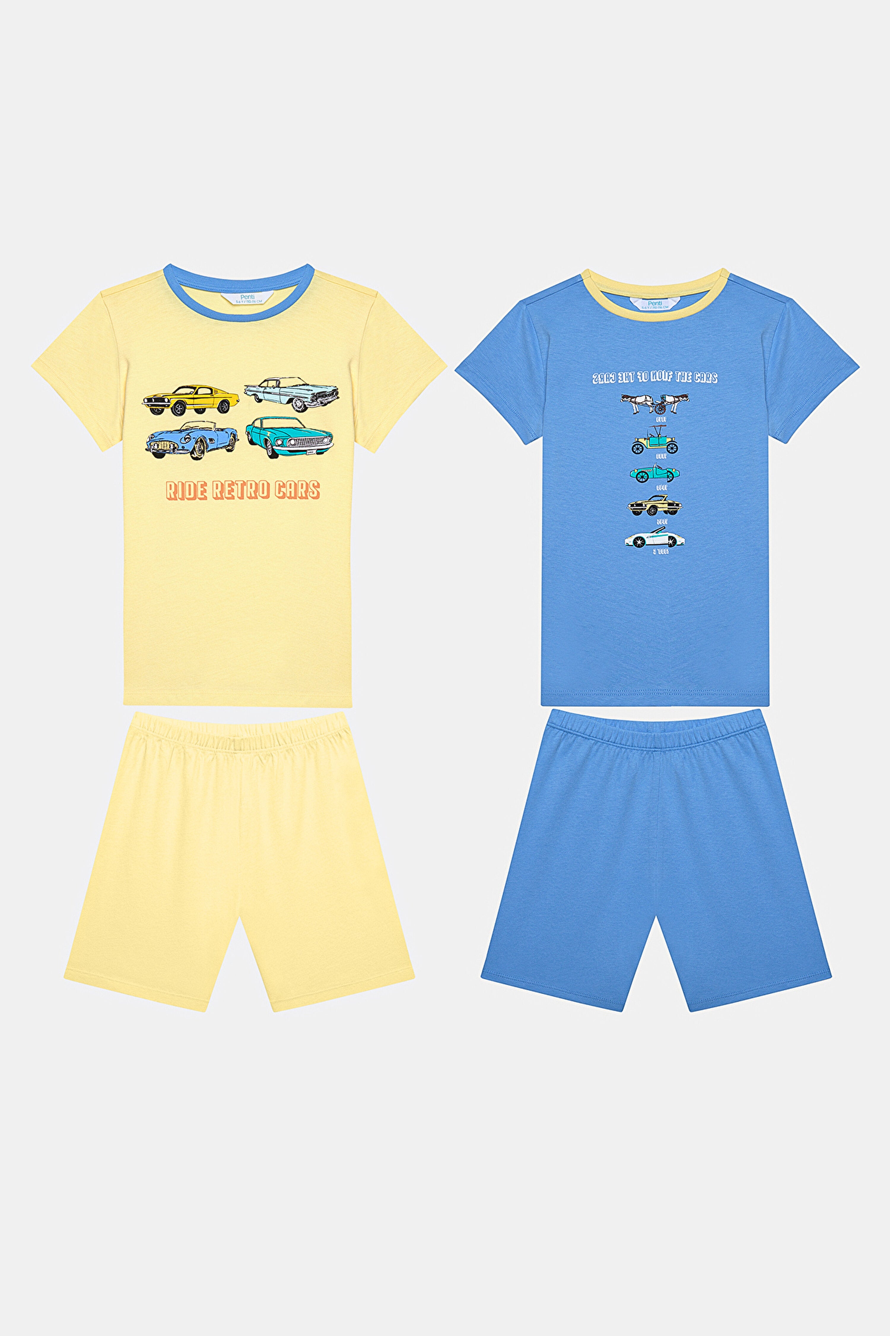 Retro Cars Sss 2-Piece Pajama Set has a design that brings a nostalgic atmosphere and offers comfort together. This pajama set, which draws attention with the harmony of blue and beige colors, is an ideal option for car enthusiasts. This set, which you can easily use at any time of the day with the energy of blue and the calmness of beige, is decorated with car figures from past to present. Moreover, it provides ease of use as it has 4 parts. The design, enlivened with various colors of old car figures, is completed with the text "Ride Retro Cars". Retro Cars Sss 2-Piece Pajama Set will be with you whenever you want to reflect your car admiration. Material
