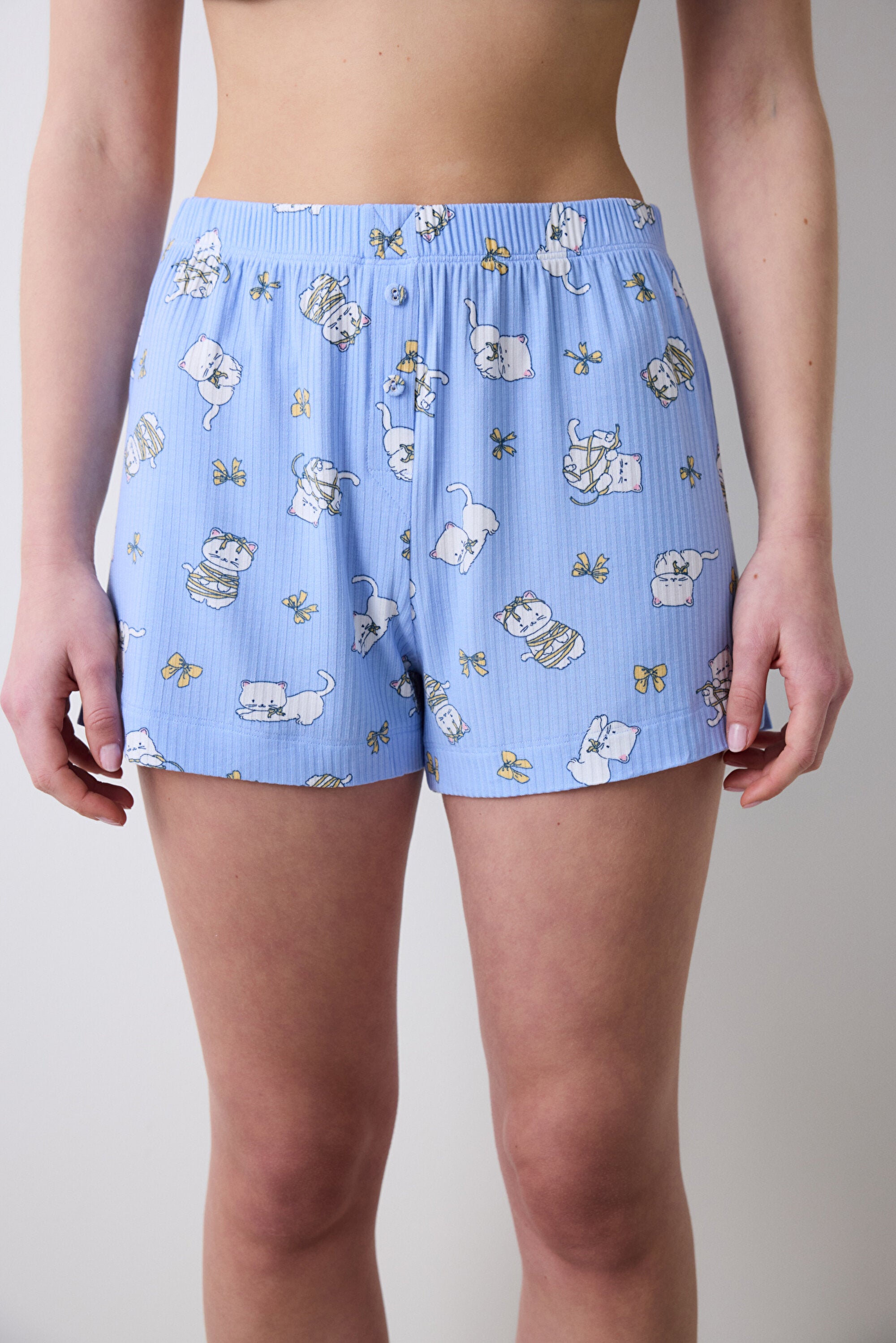 Bowtiful Printed Shorts Light Blue Pajama Bottoms