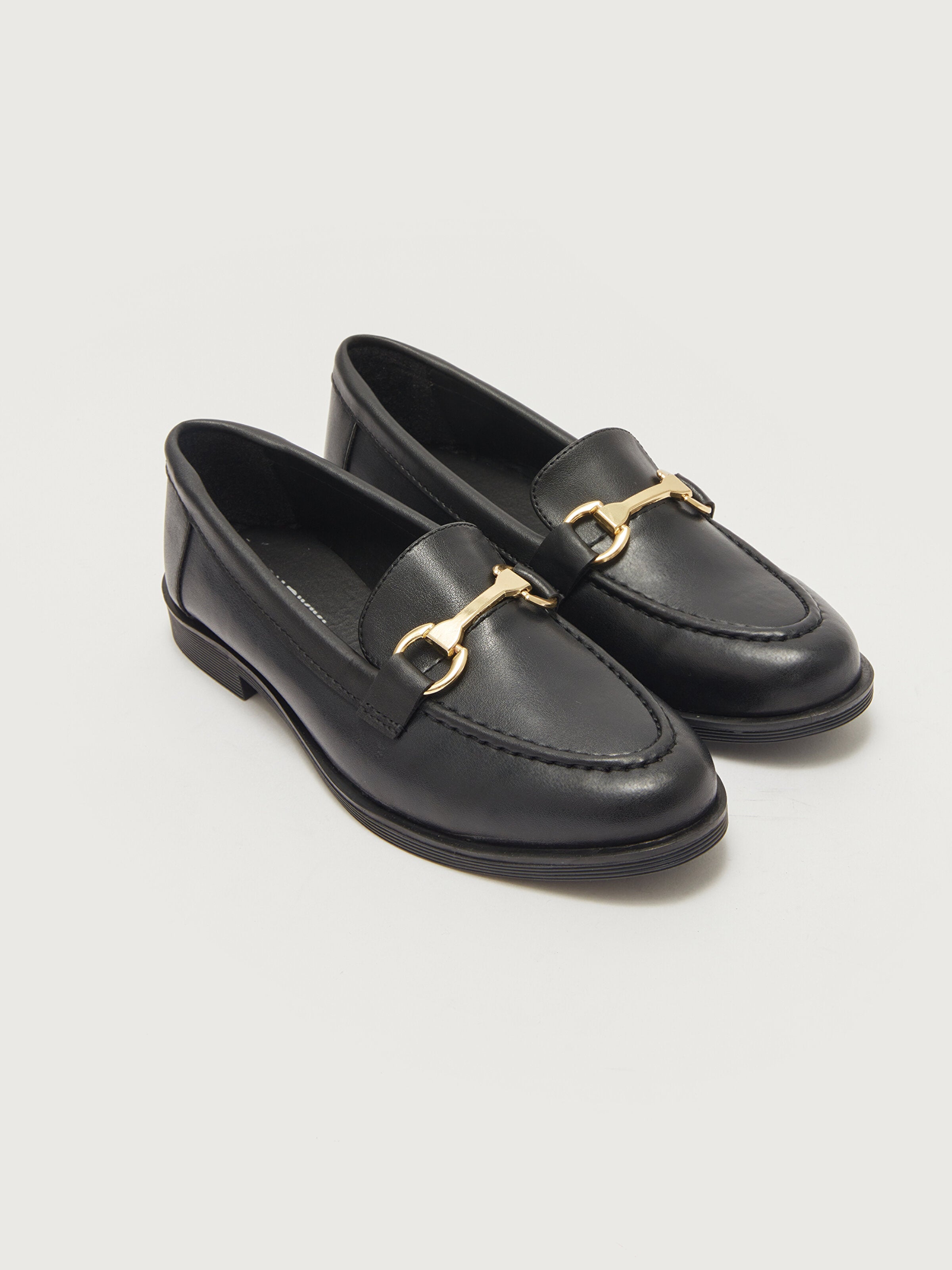 Loafer shoes offer the modern interpretation of the classic loafer style and adapt to most clothing style. There is a metal buckle detail in front of it, this detail will adapt to your combinations.