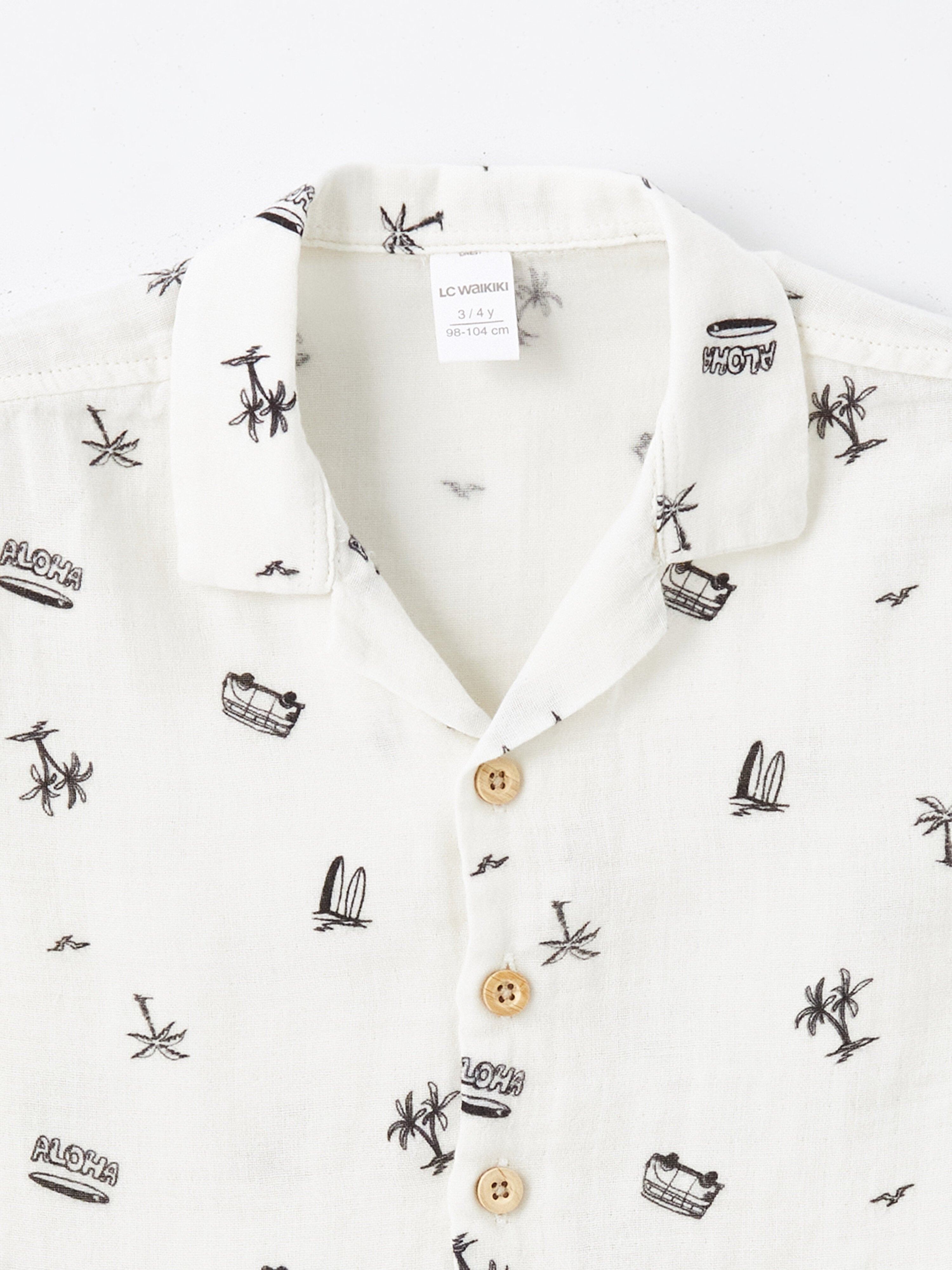 Short sleeve baby boy printed shirt, made of 100% cotton. It provides a gentle touch to your baby's skin and keeps it cool on hot summer days thanks to its breathable feature. Its lively and energetic prints reflect the joy of summer.