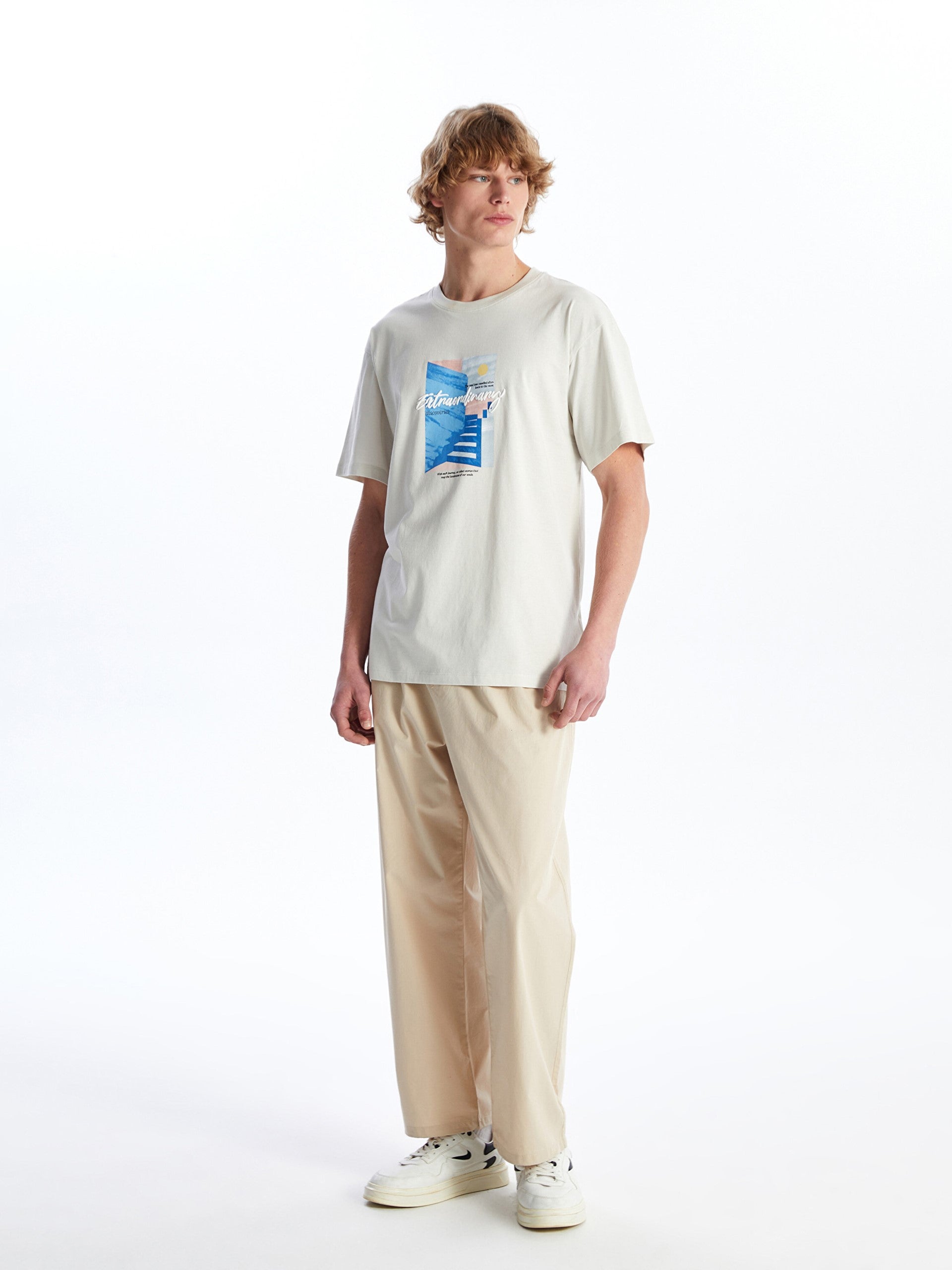 Crew Neck Short Sleeve Printed Combed Cotton Men T-Shirt