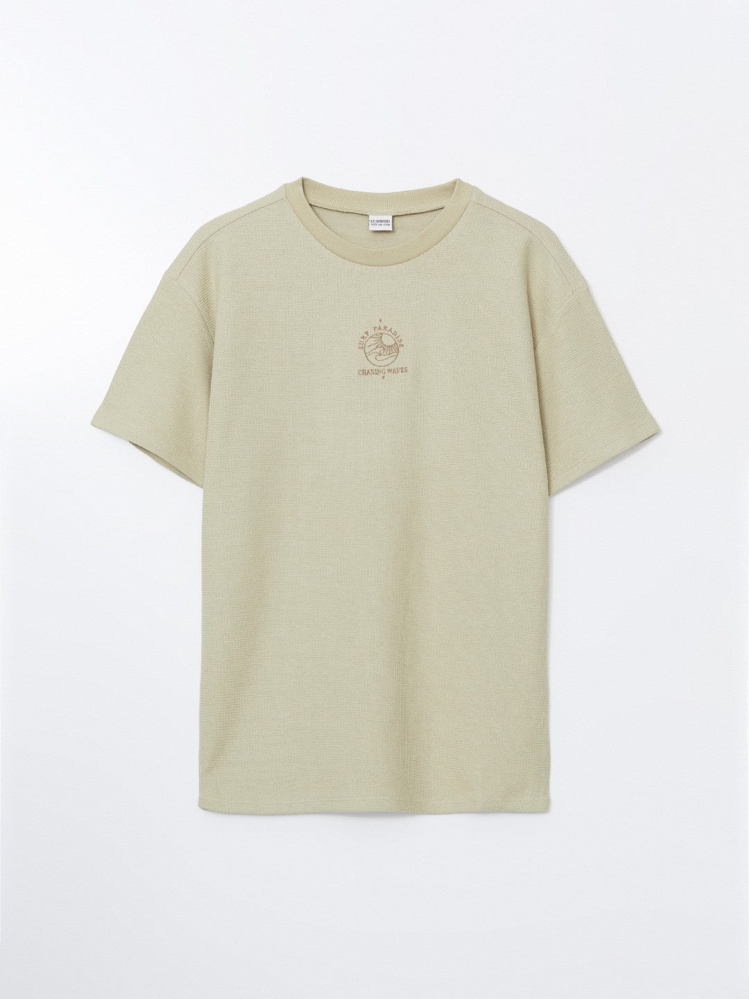 Made from a flexible cotton blend fabric, the short-sleeved t-shirt offers a stylish and comfortable option with its embroidery details, making it an ideal choice for daily use.