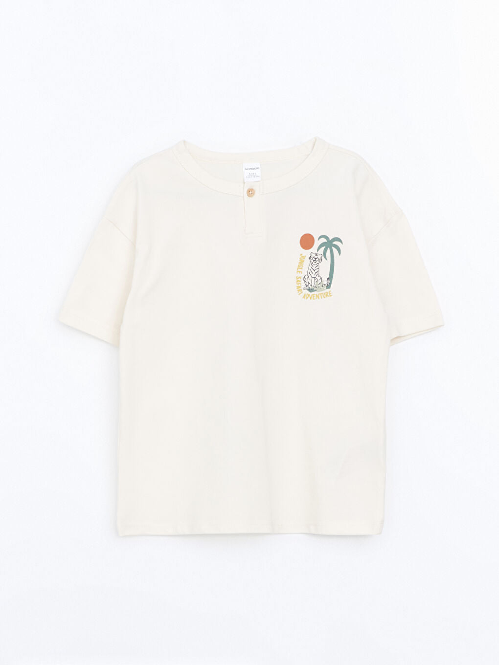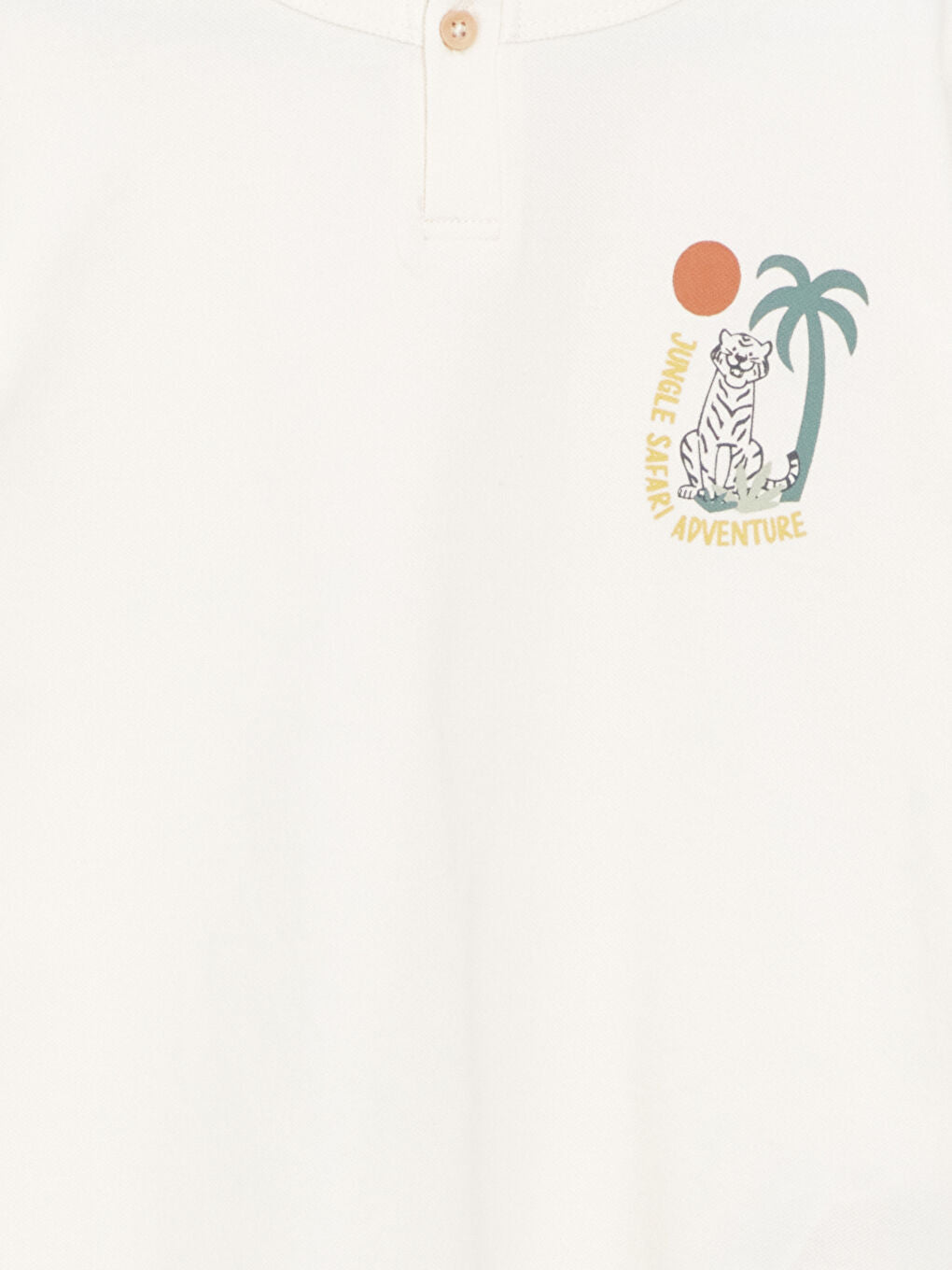 Made of soft cotton pique fabric, this crew neck boys' t-shirt offers all-day comfort with its breathable structure. Drawing attention with its cute prints, this design is an ideal choice for both playtime and daily combinations.