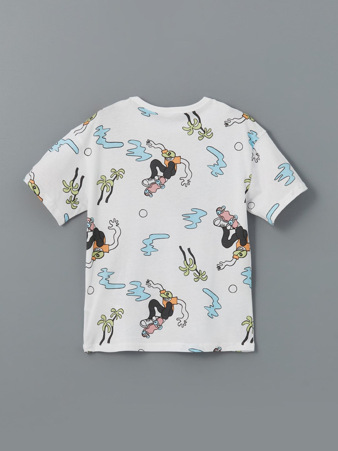 LCW Kids Crew Neck Printed Combed Cotton Boy T-Shirt