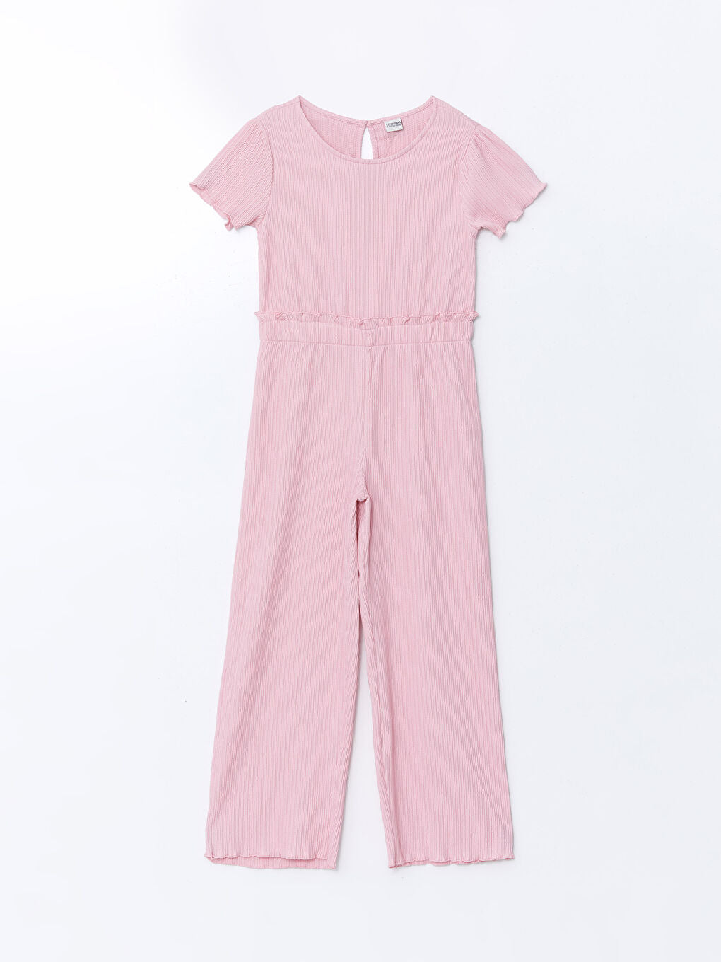 LCW Kids Pink Crew Neck Girl Jumpsuit