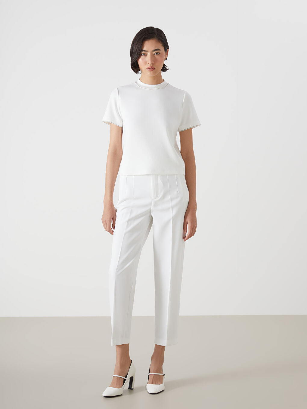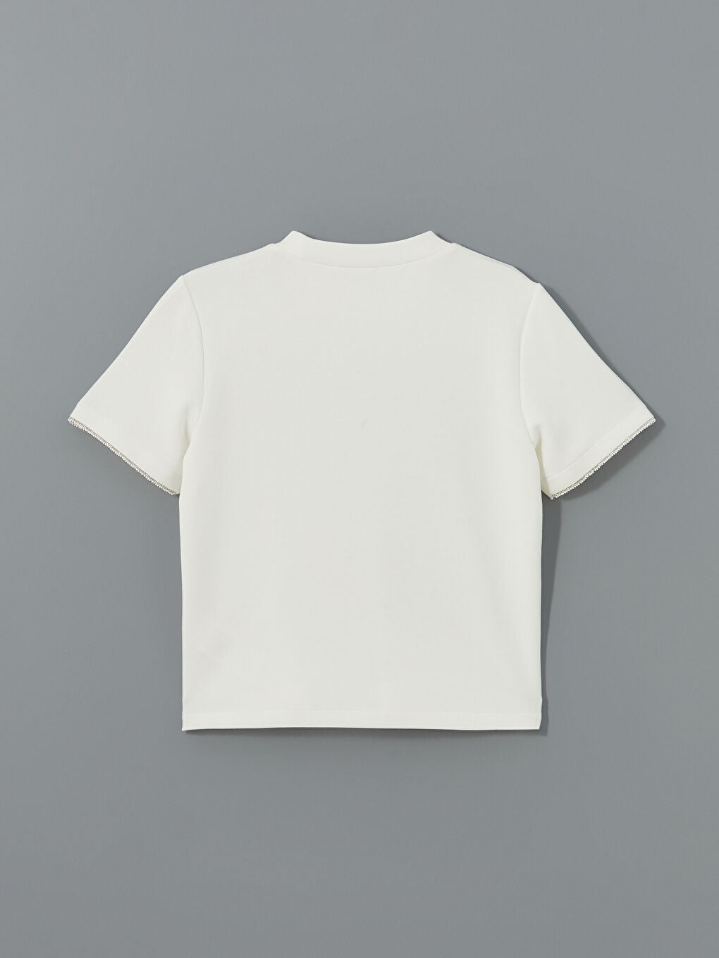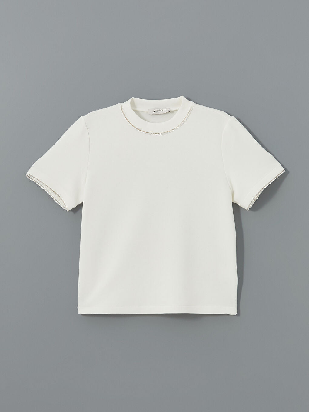 LCW Vision Ecru Stand Collar Stoned Women T-Shirt