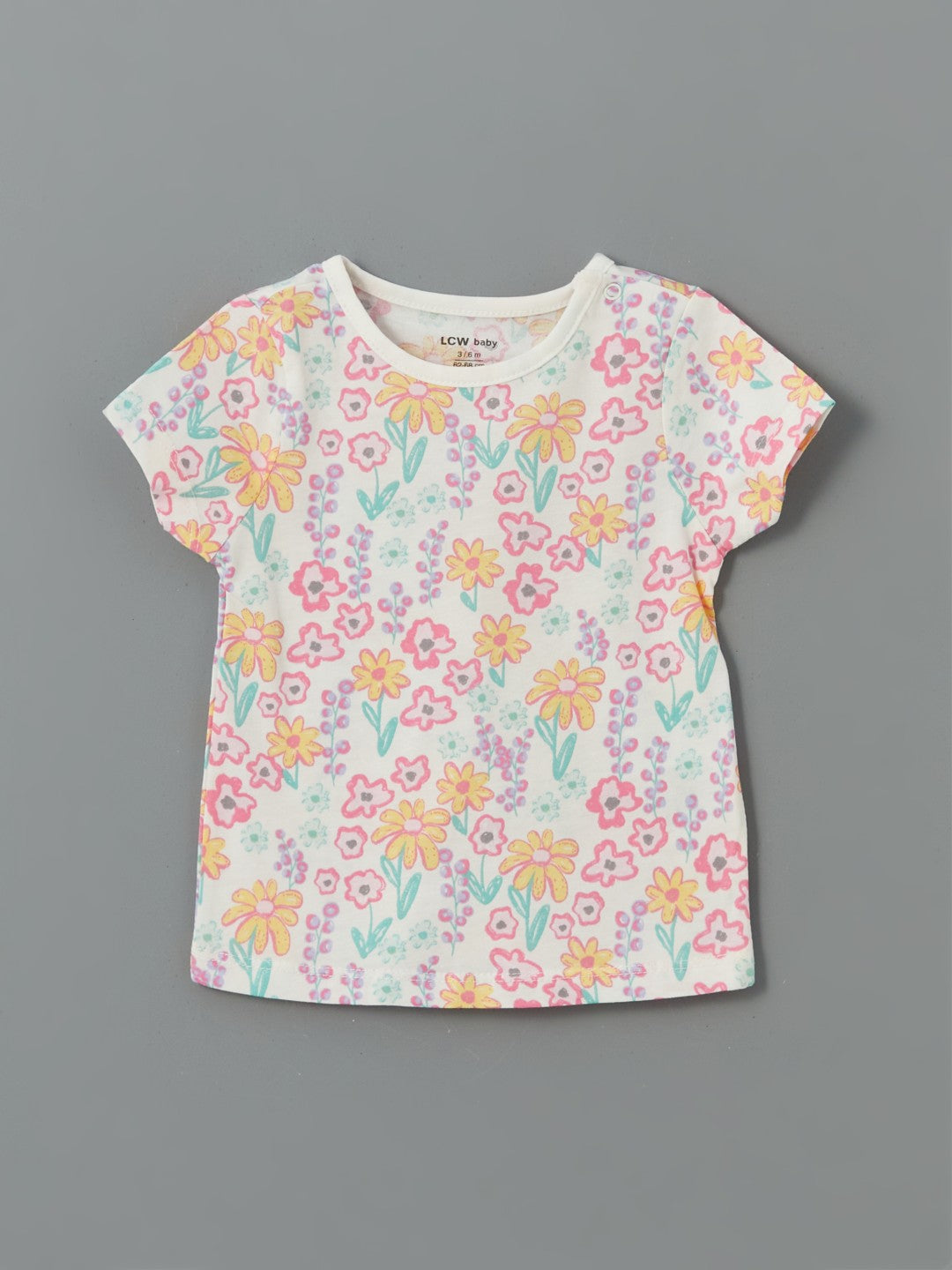 LCW Baby Crew Neck Baby Girl Shorts Pajama Set 2-Piece