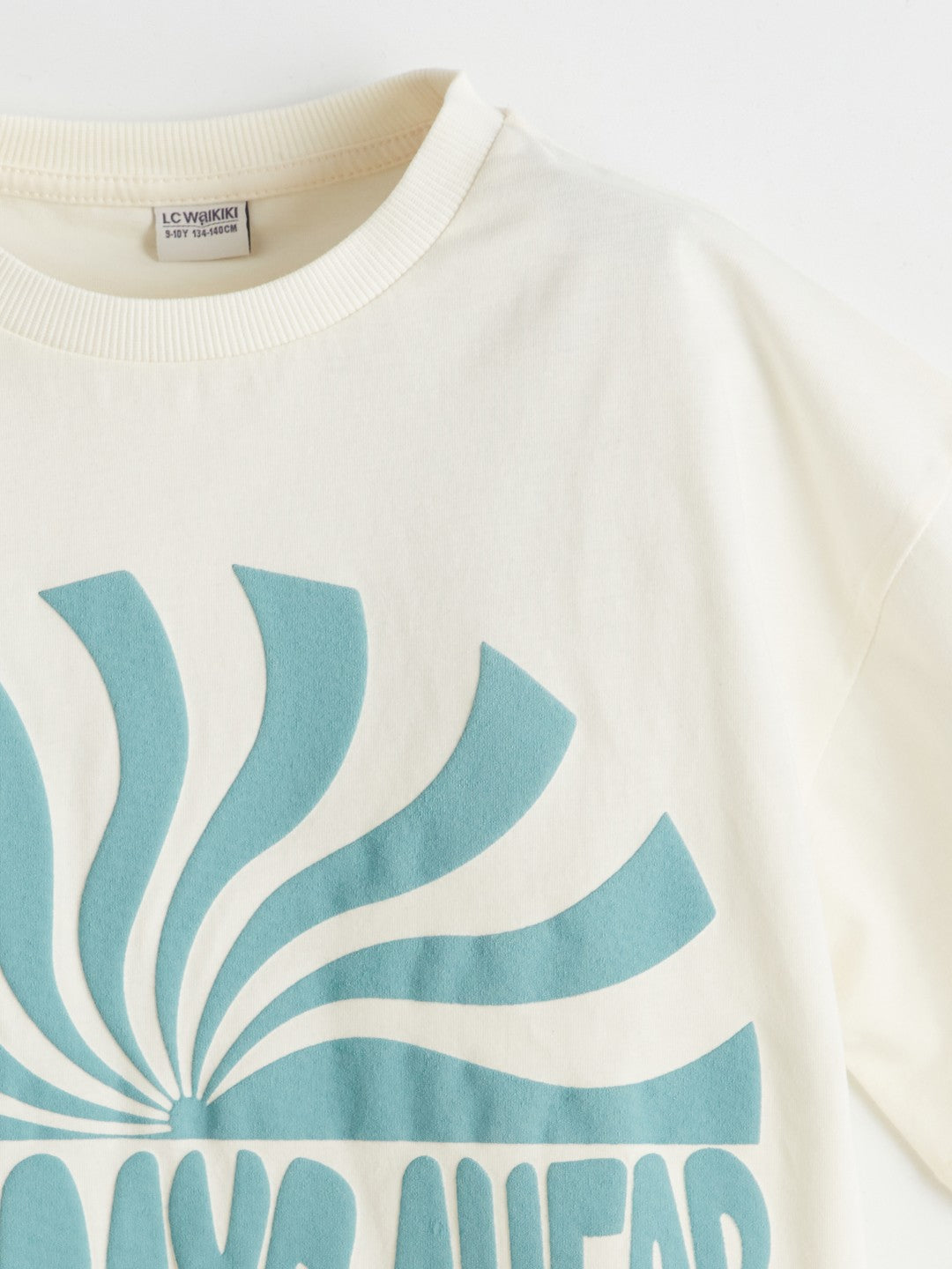 LCW Kids Crew Neck Printed Combed Cotton Embossed BoyS T-Shirt