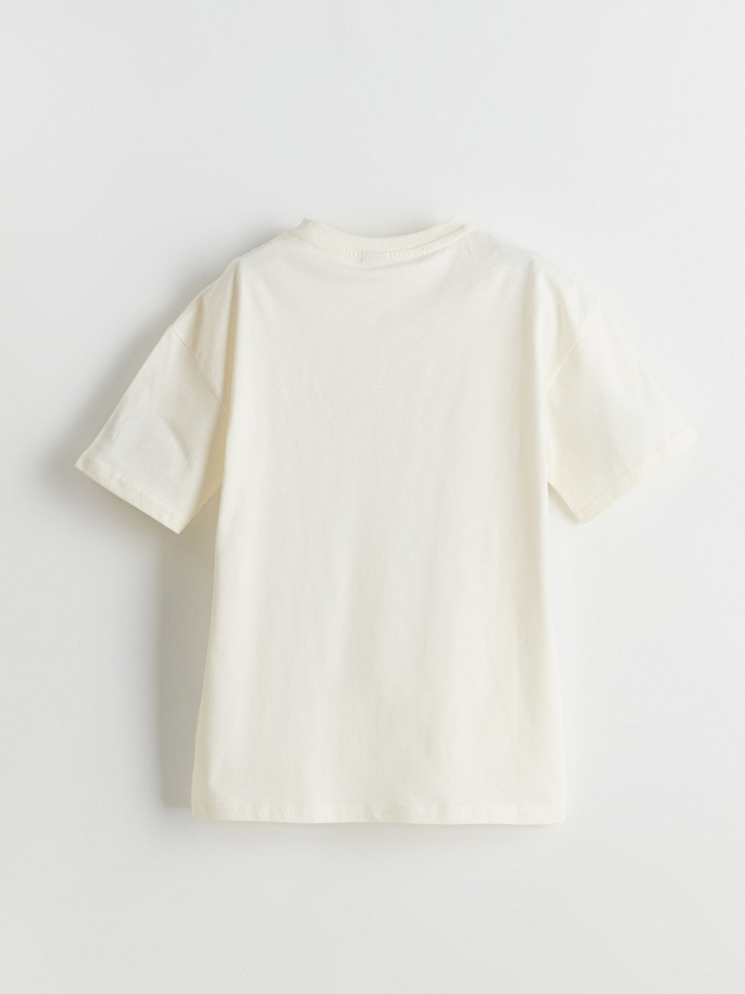 A relaxed fit, short sleeve, thin combed cotton t-shirt for boys. It offers a stylish look with its crew neck detail and embossed printed design. Ideal for daily use.