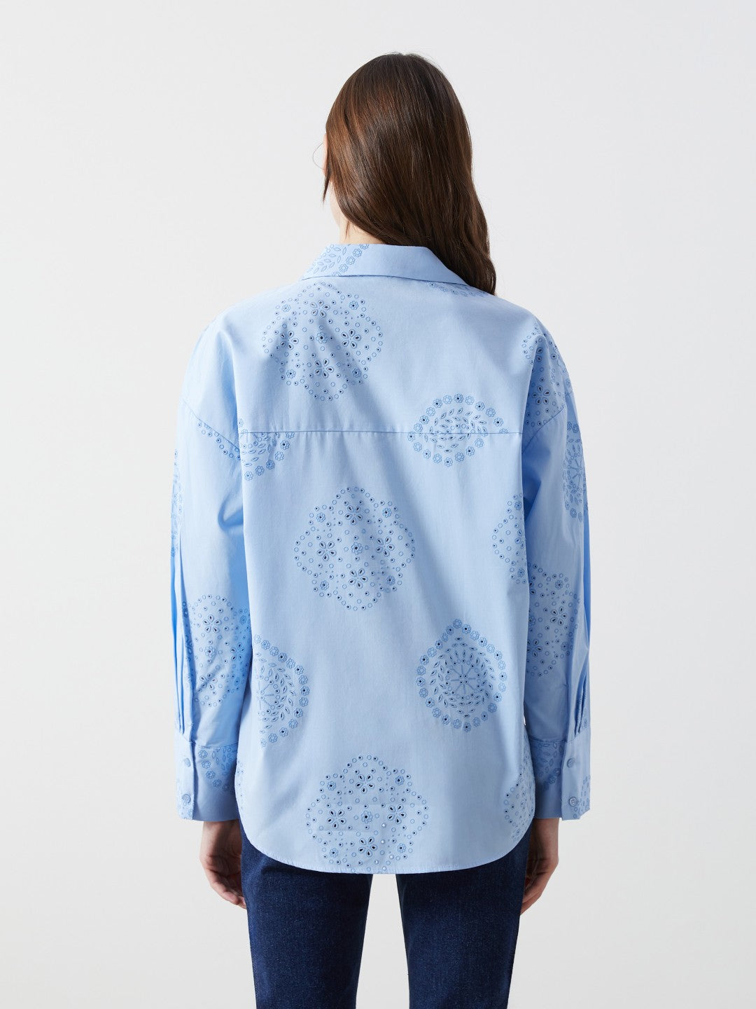 Openwork long-sleeved women's shirt highlights your elegance with its elegant openwork fabric. It offers an eye-catching style with both modern and feminine details.