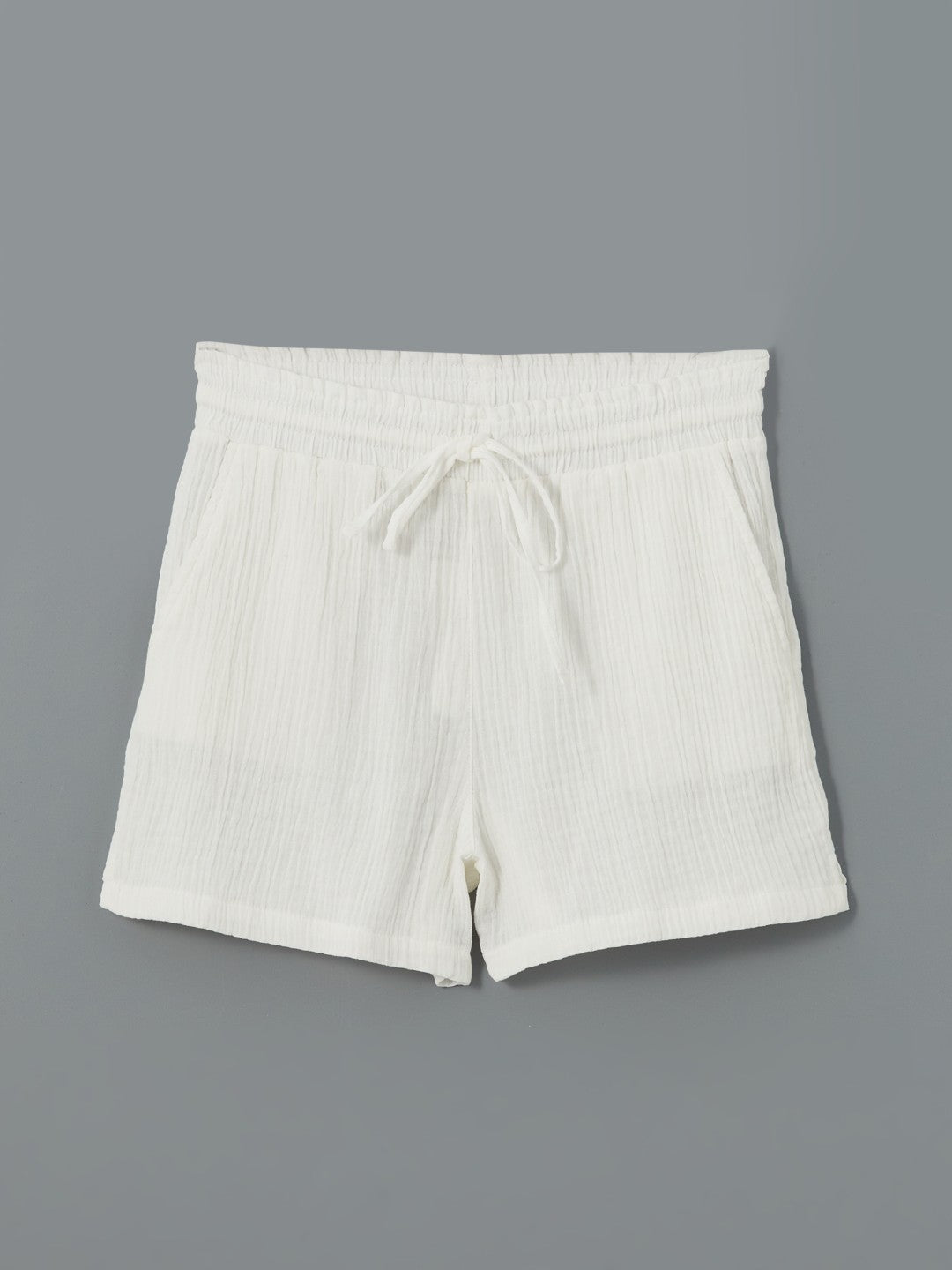 Elastic waist textured women's shorts offer all-day comfort with their elastic waist. The textured fabric provides both a stylish look and comfort.