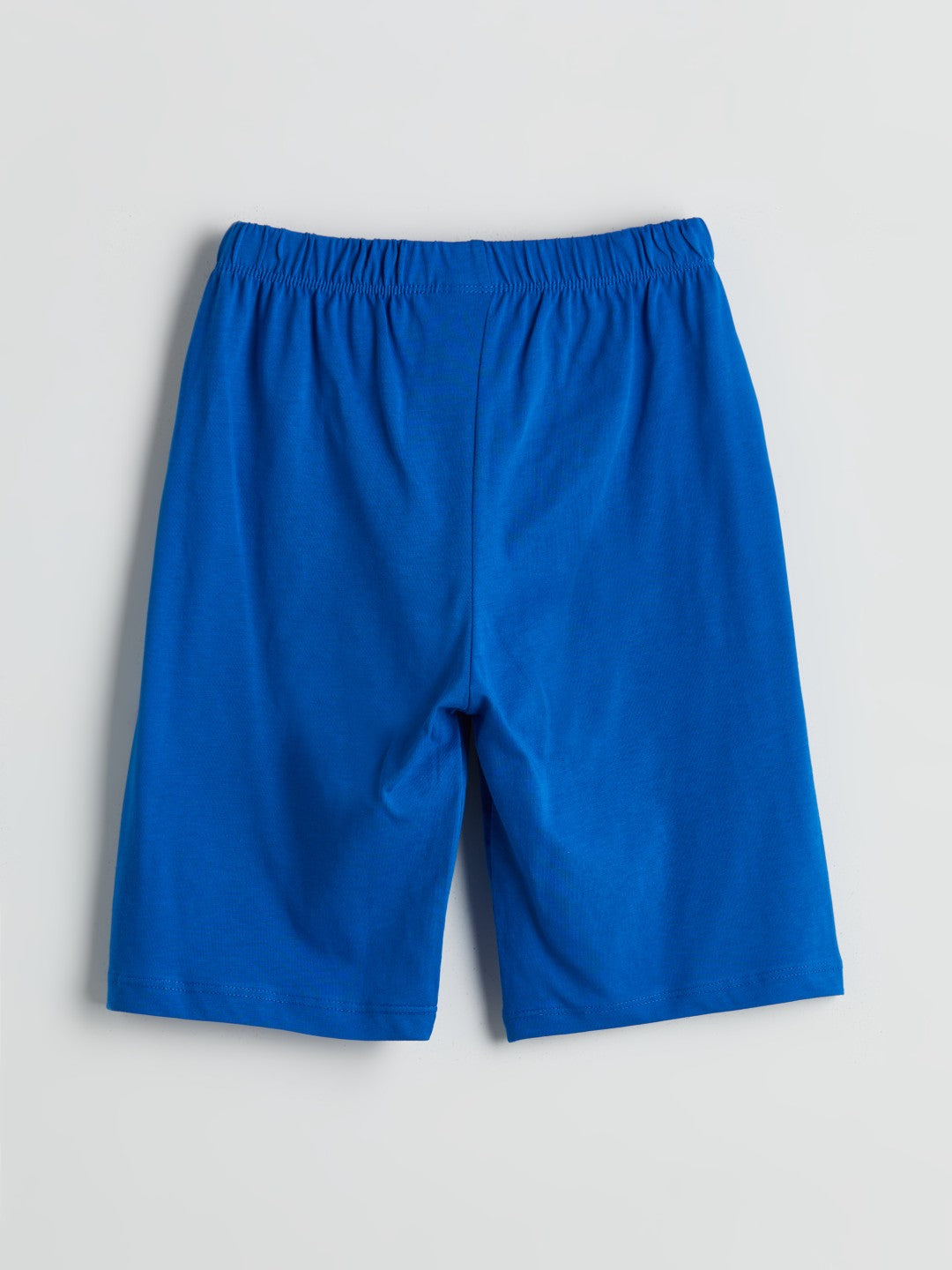 The boys shorts pajama set is designed with a printed 100% cotton combed fabric. The comfortable fabric provides a cool and comfortable sleep in the summer months and offers freedom of movement with its shorts design.