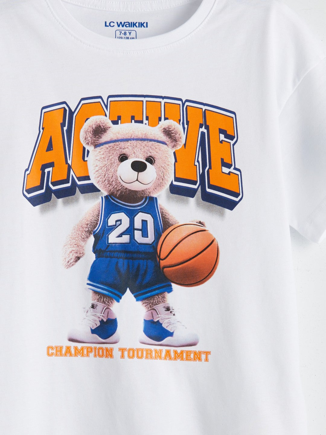 LCW Kids Crew Neck Teddy Bear Printed Boy Shorts Pajama Set