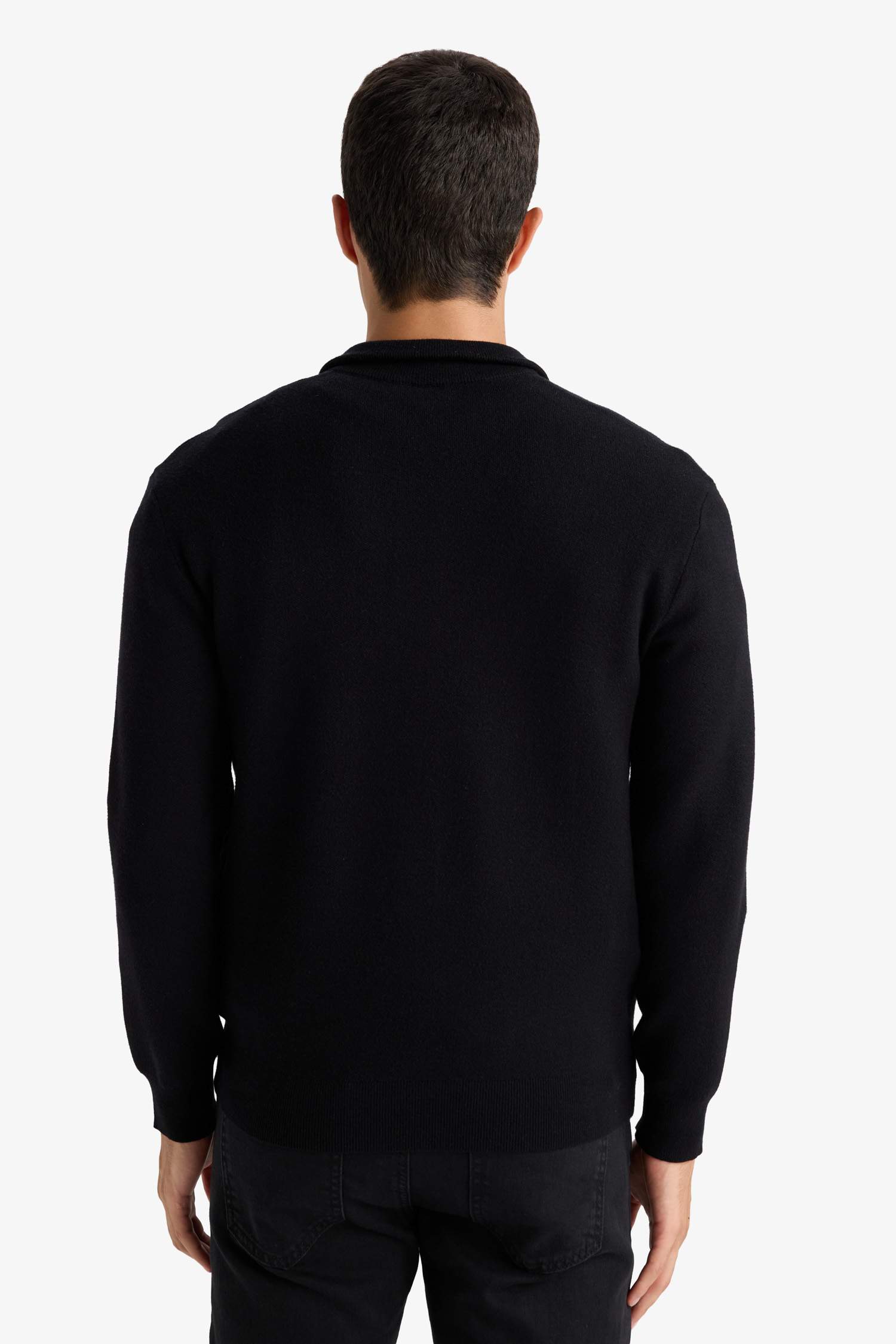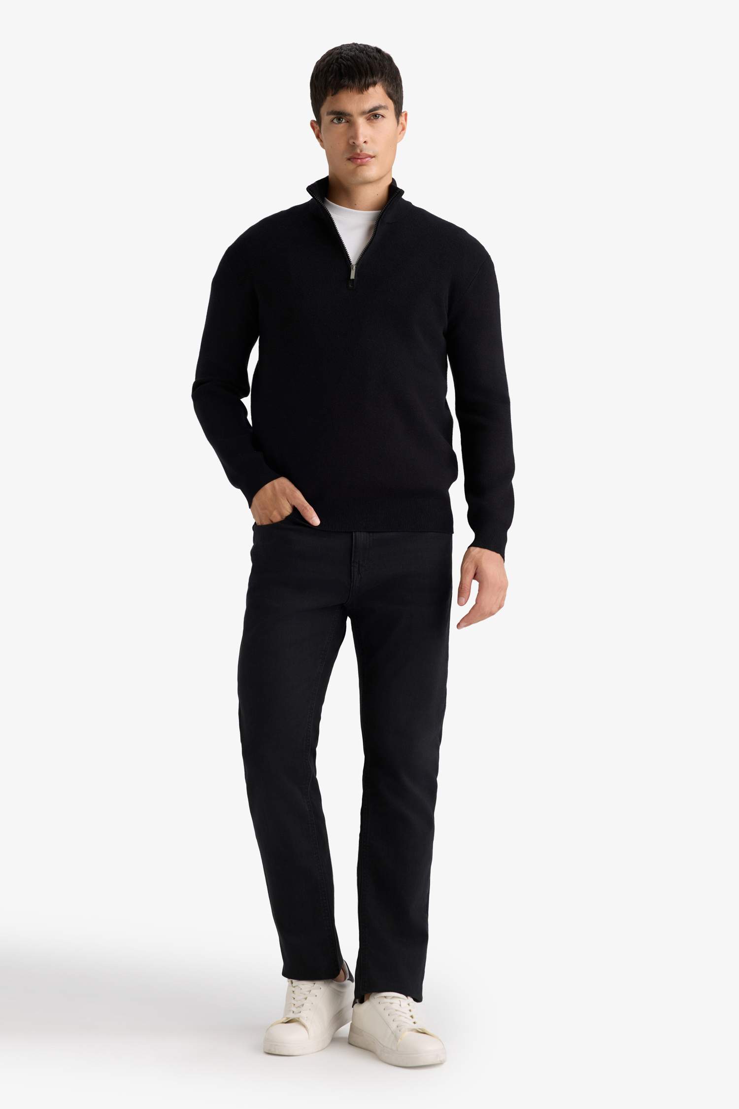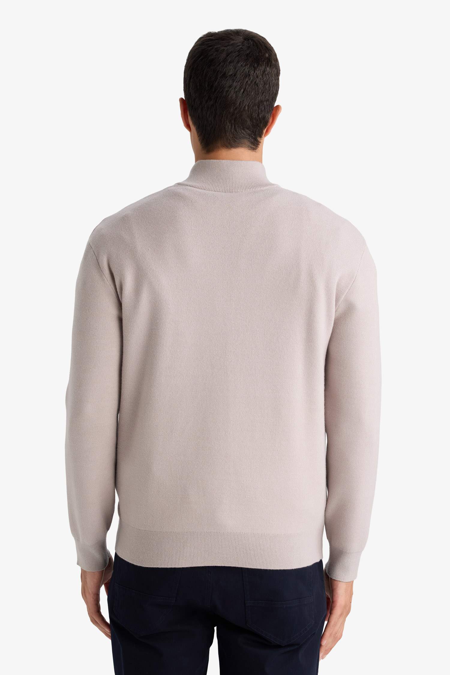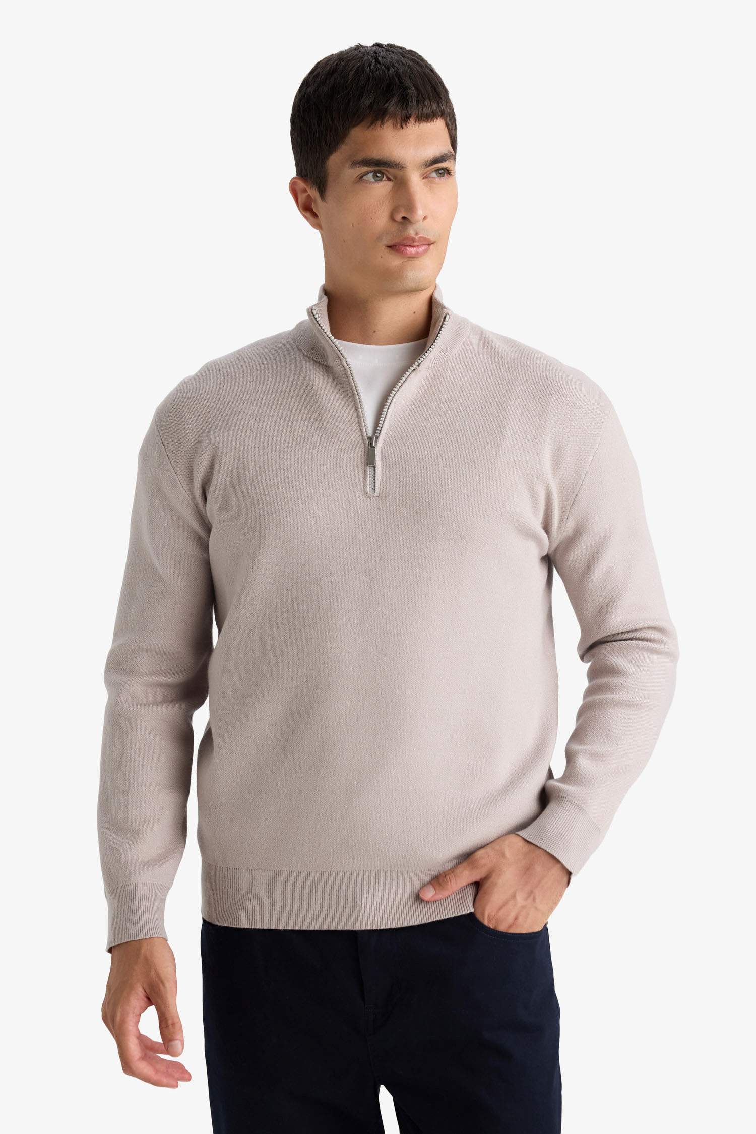 Standard Fit Zip-Up Turtle Neck Knitwear Pullover