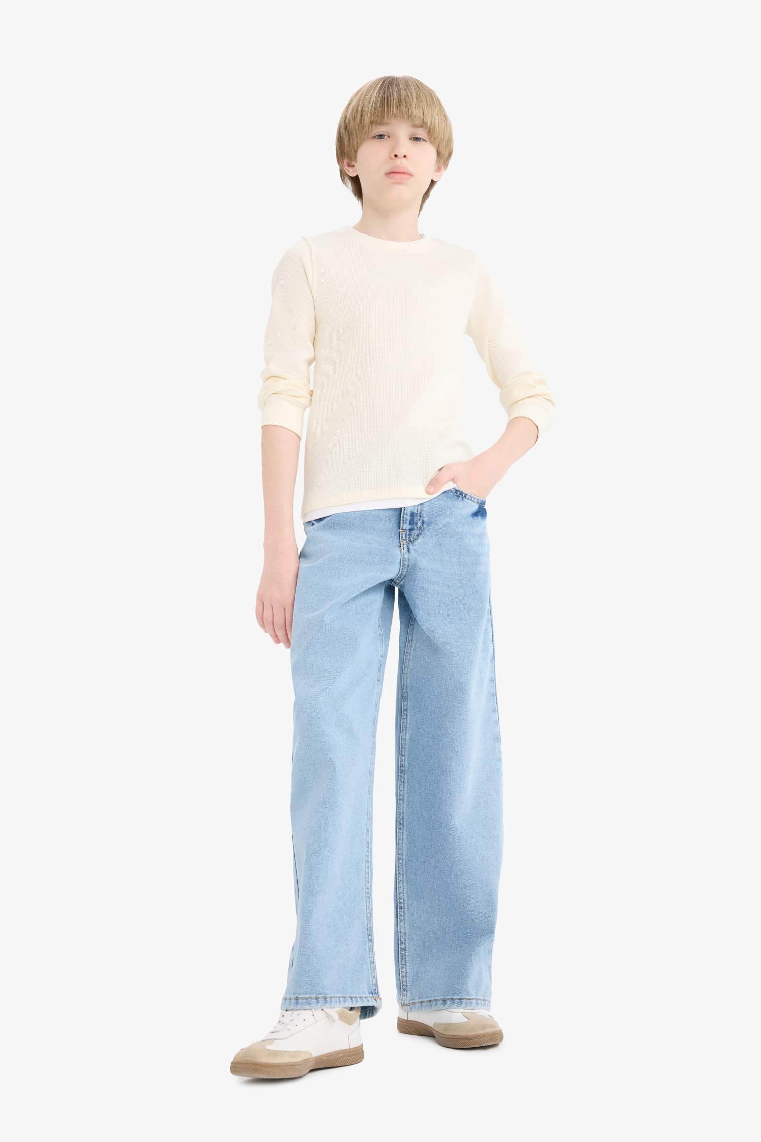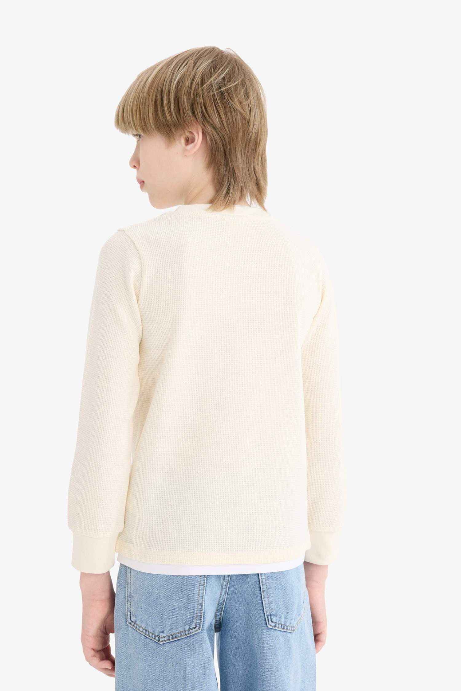 Boys' Crew Neck Basic Plain Waffle Long Sleeve School T-Shirt