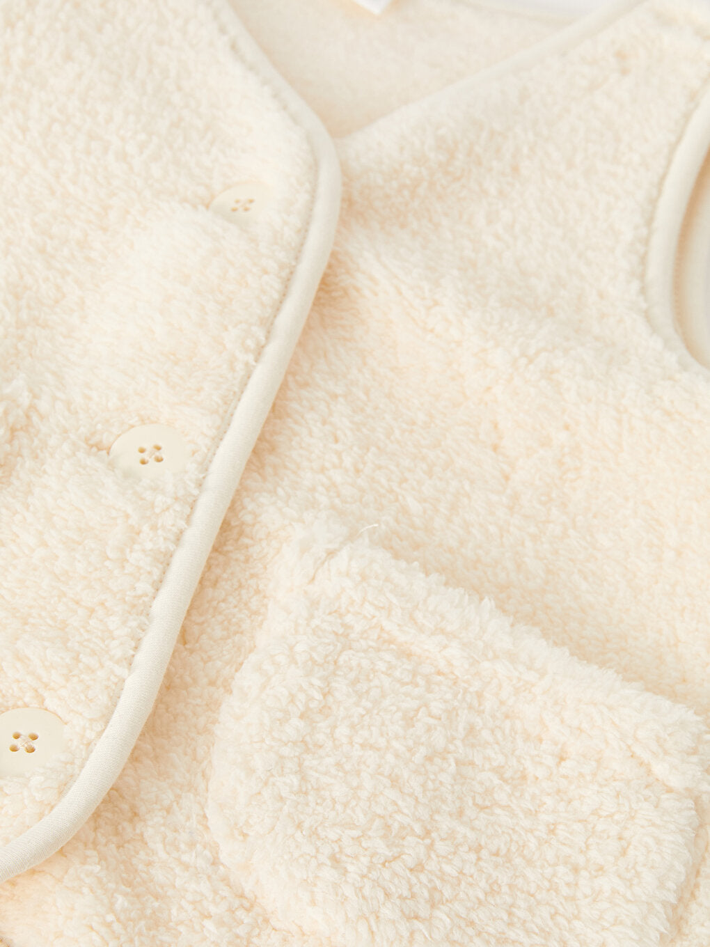 With its V-neck design, the baby girl vest combines elegance and functionality. Thanks to its button-closing structure, it offers ease of putting on and taking off. It keeps your baby warm with its plush fabric and provides a soft touch.