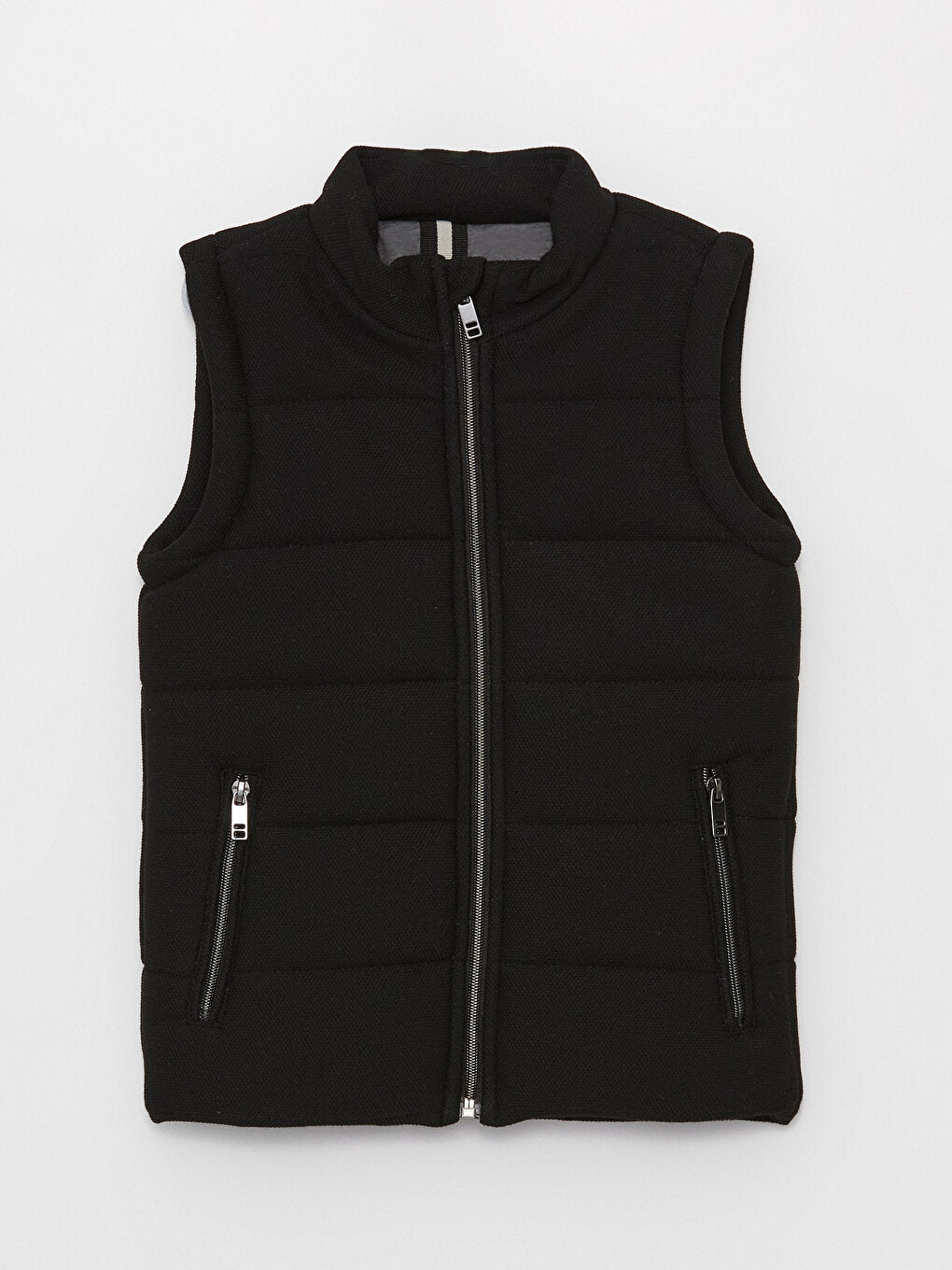 With its stand-up collar design and zippered closure, the boy's vest offers ease of use. The zippered pocket detail on the vest adds style and offers a practical storage space for small items.