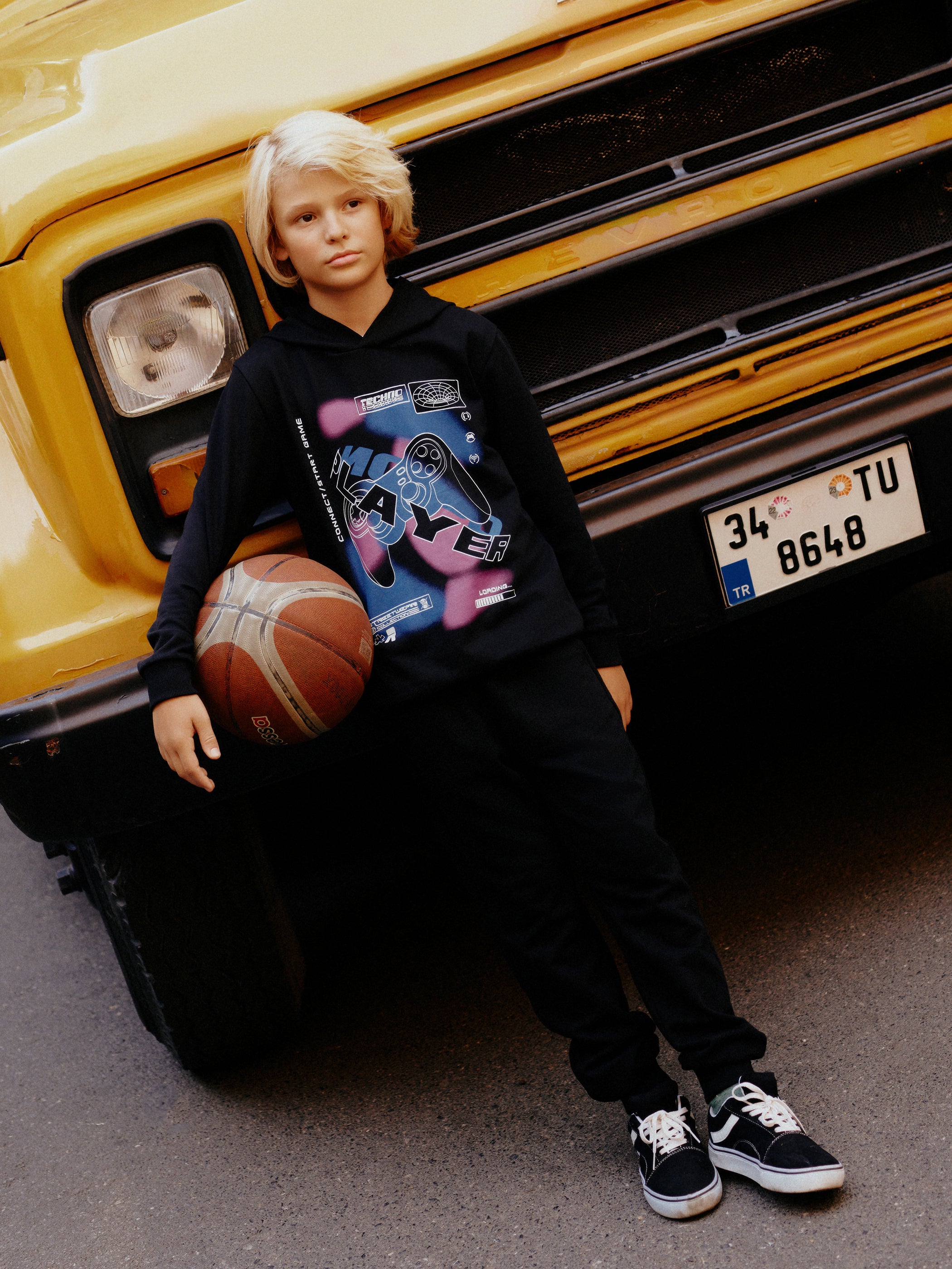 Made of 3-thread fabric, the sweatpants provide a comfortable fit and freedom of movement with their elastic waist and leg features. Their soft and flexible structure ensures your child's comfort all day long.