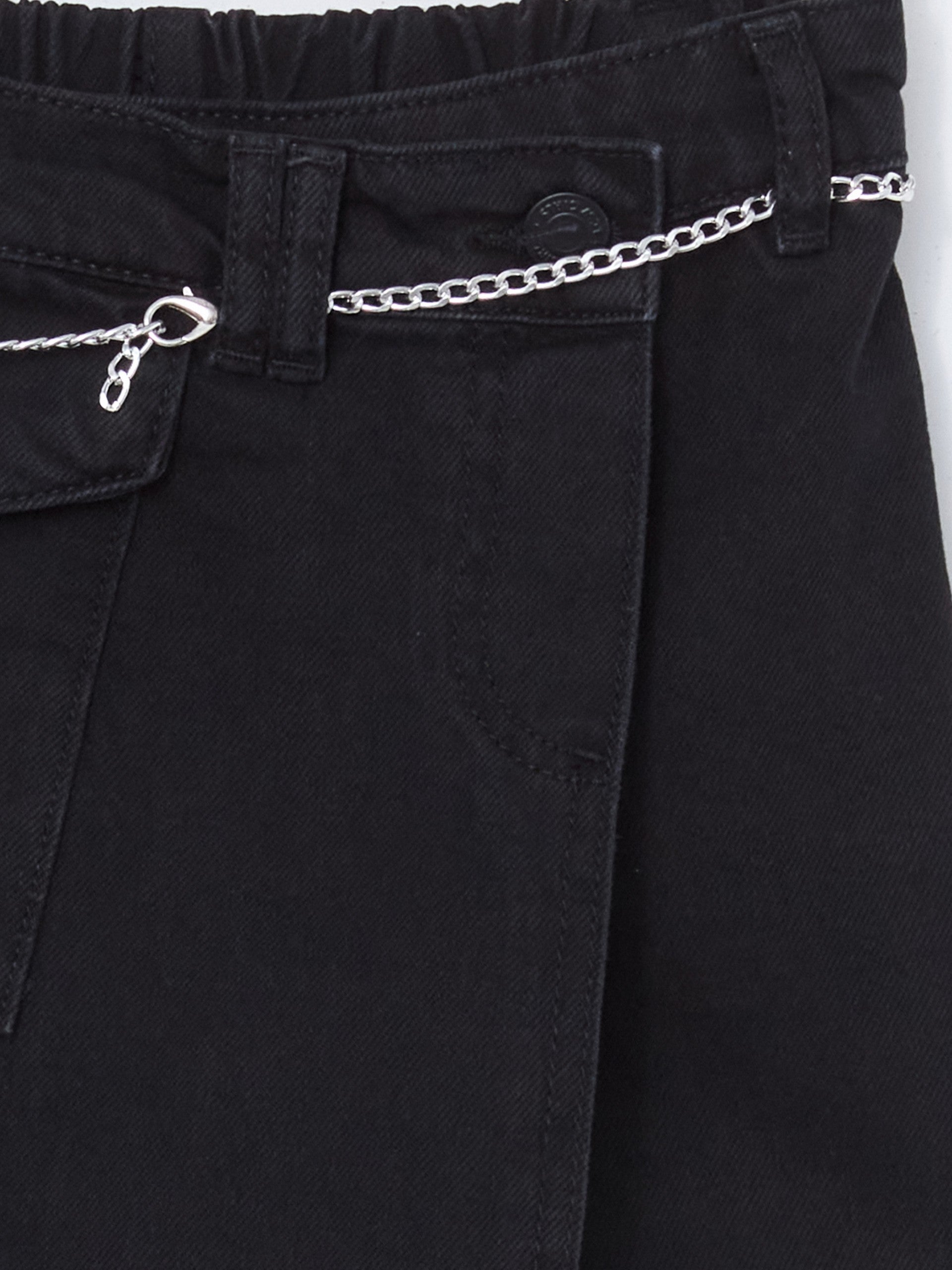 Lcw Kids Black Elastic Waist Girl Jean Shorts Skirt