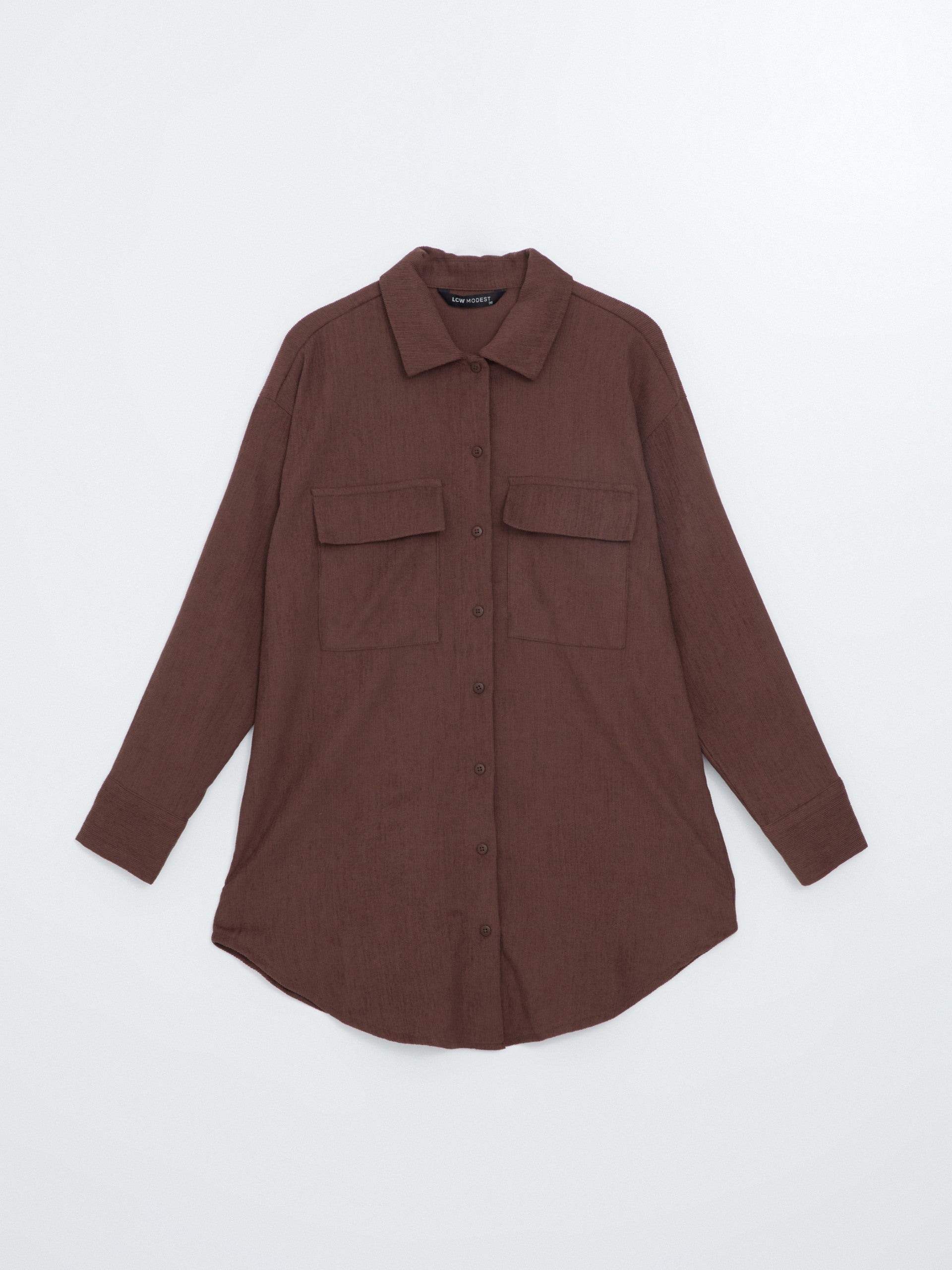Shirt Collar Plain Long Sleeve Oversize Tunic Made Of Velvet Fabric. It Offers Freedom Of Movement With Its Hip Length Design And Oversize Cut. Thanks To The Velvet Fabric, It Keeps You Warm And Comfortable In Cold Weather.