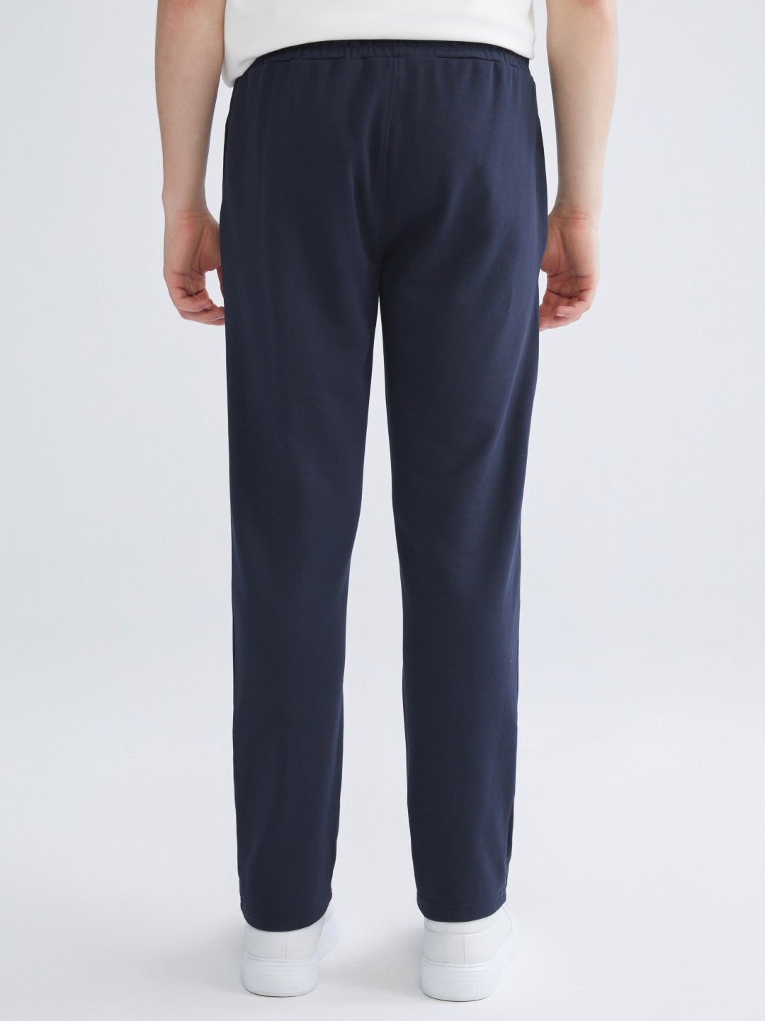 Men's tracksuit bottoms with a standard fit design are made of sweatshirt fabric.