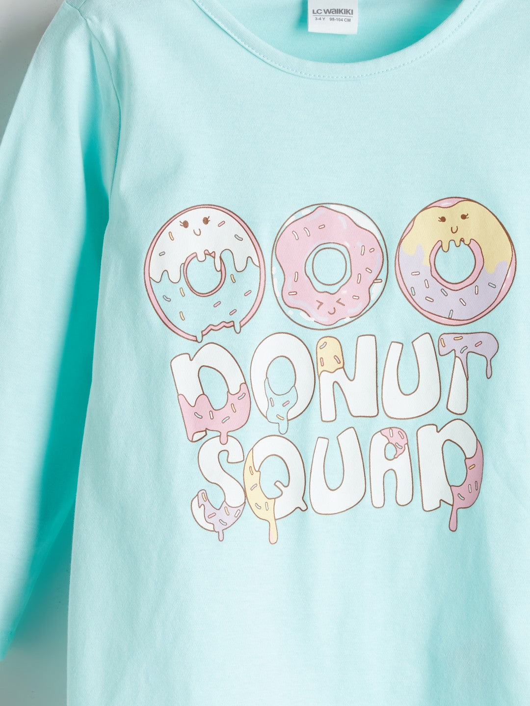 Girls pajama set consists of a crew neck, long sleeves, printed top and patterned bottoms with elasticated legs.
