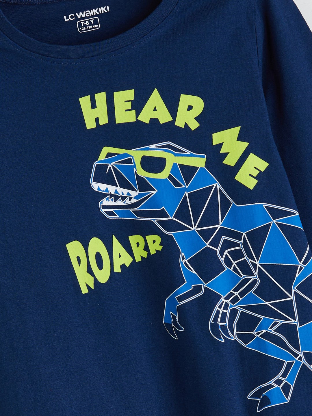 LCW Kids Navy Blue Crew Neck Boys Pajama Set