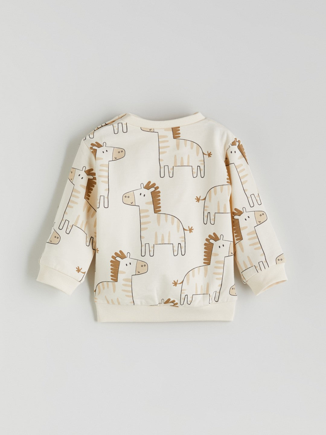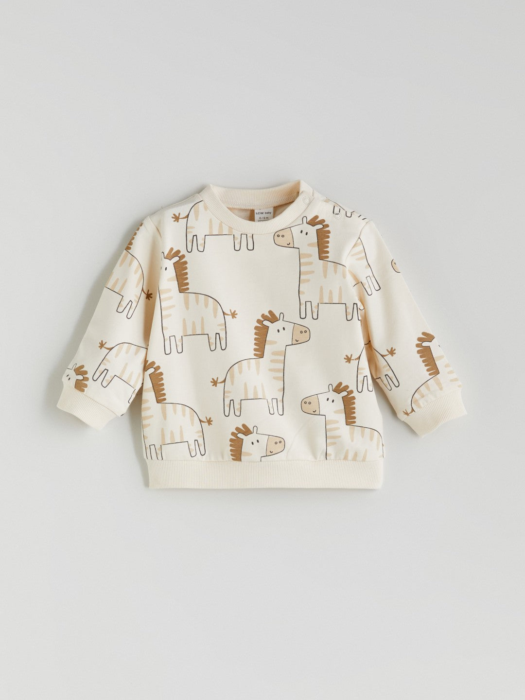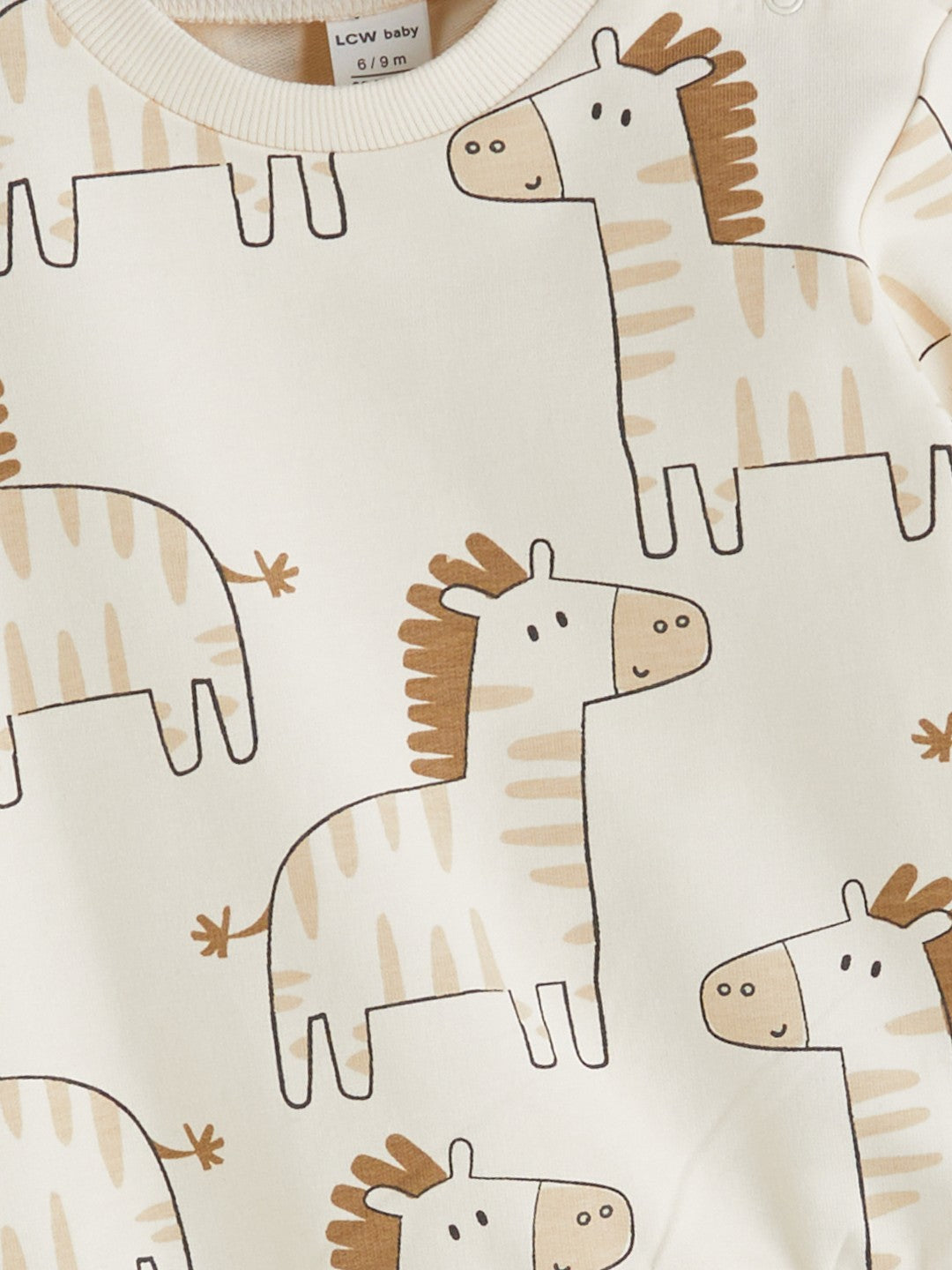 LCW Baby Ecru Printed Baby Boy Sweatshirt And Tracksuit Bottom 2-Pack
