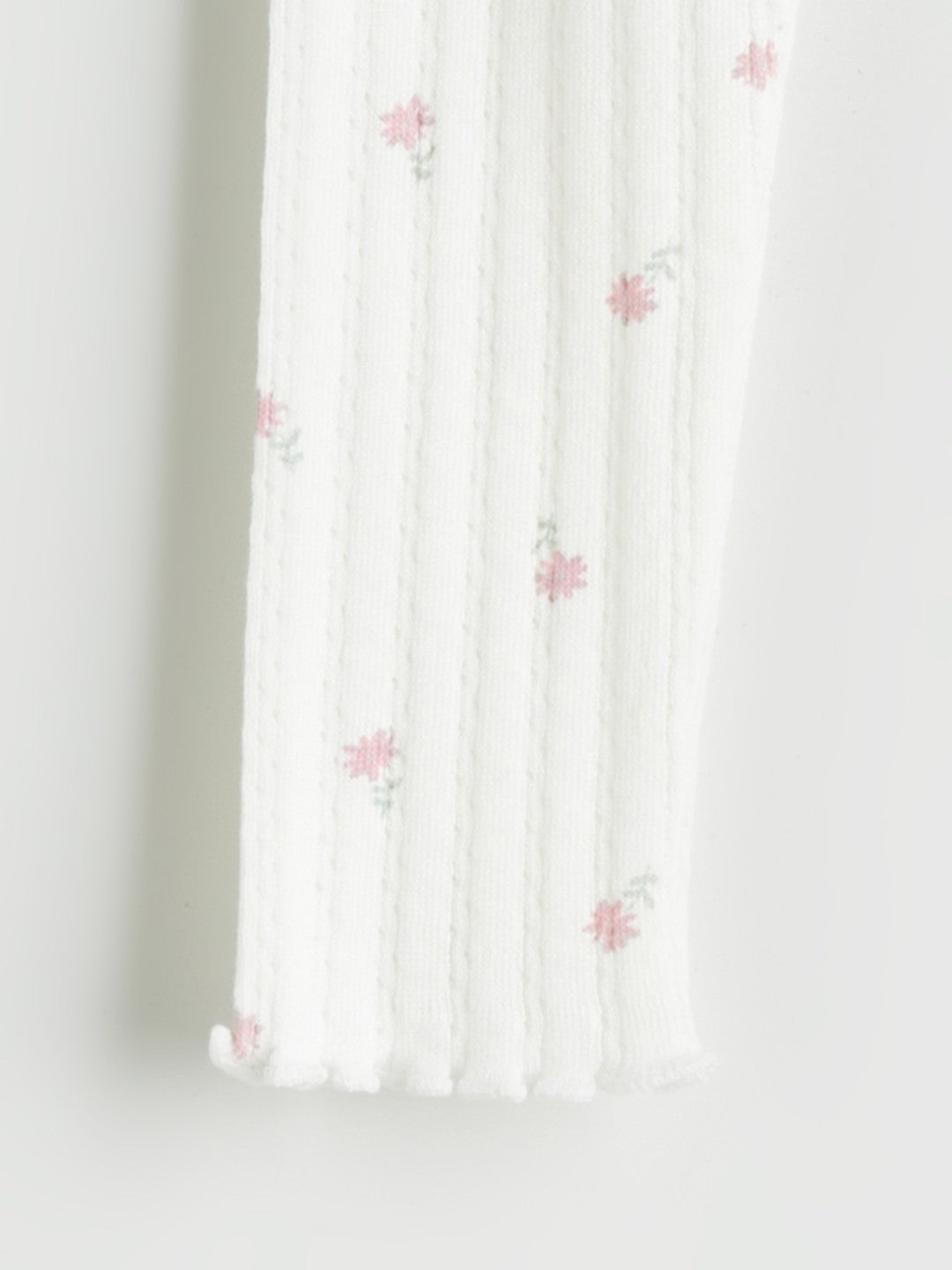 Made of stretchy cotton fabric, the baby girls 3-pack tights have a floral pattern and a plain design.