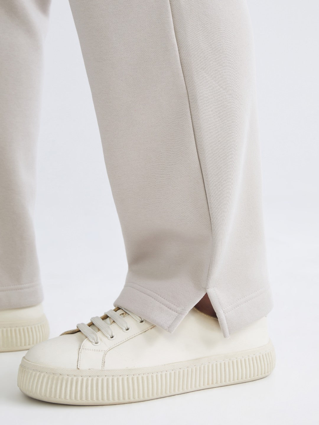 Men's sweatpants made of thick, triple-strand fabric with an elastic waistband and adjustable drawstrings. They also feature side pockets and slits at the hems.